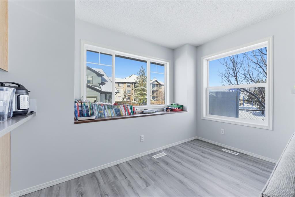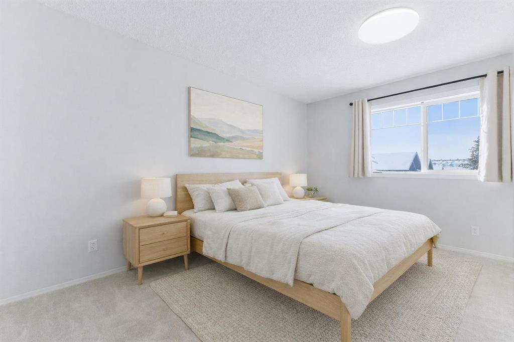 Welcome to 52 Panatella Villas NW, a beautifully maintained corner unit townhouse backing onto peaceful greenspace in the highly sought after community of Panorama Hills. This bright end unit stands out with additional windows that fill the home with natural light and offer a sense of privacy rarely found in townhome living. Upon entering, you are welcomed by a freshly painted interior and a spacious open concept main floor featuring brand new vinyl plank flooring and updated light fixtures. The well designed kitchen provides ample cabinetry and counter space and flows seamlessly into the dining area and a generous living room centered around a cozy gas fireplace, creating an ideal setting for both everyday living and entertaining. Large windows along the back of the home overlook the greenspace, bringing in natural light and creating a warm and inviting atmosphere throughout the main level. Upstairs you will find a spacious primary bedroom complete with a walk in closet, along with two additional well sized bedrooms and a full four piece bathroom, making this home perfect for families, guests, or a home office setup. New carpet throughout the upper level adds comfort and a fresh updated feel. The fully developed basement provides a versatile recreation room that can easily function as a media room, home gym, playroom, or workspace depending on your needs. Completing the home is a single attached garage along with additional driveway parking, providing everyday convenience. With low condo fees and a well managed complex, this property offers excellent value in one of Northwest Calgary’s most desirable communities. Located just minutes from schools, shopping, restaurants, public transit, and the Panorama Hills Community Centre, residents also enjoy easy access to nearby parks, playgrounds, and walking pathways. This move in ready home offers a fantastic opportunity for first time buyers, families, or investors looking for comfort, location, and long term value.