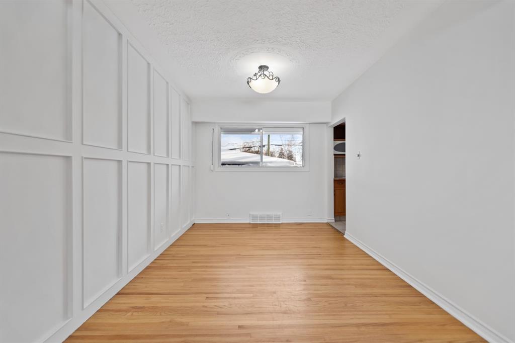 Inside, it’s been very well taken care of and has hardwood floors throughout. The layout is functional as is but there’s also the option to open things up if you wanted a more modern feel. The kitchen looks out to the backyard, the living room has a cozy wood burning fireplace, and there’s a formal dining space with nice wainscoting detail.