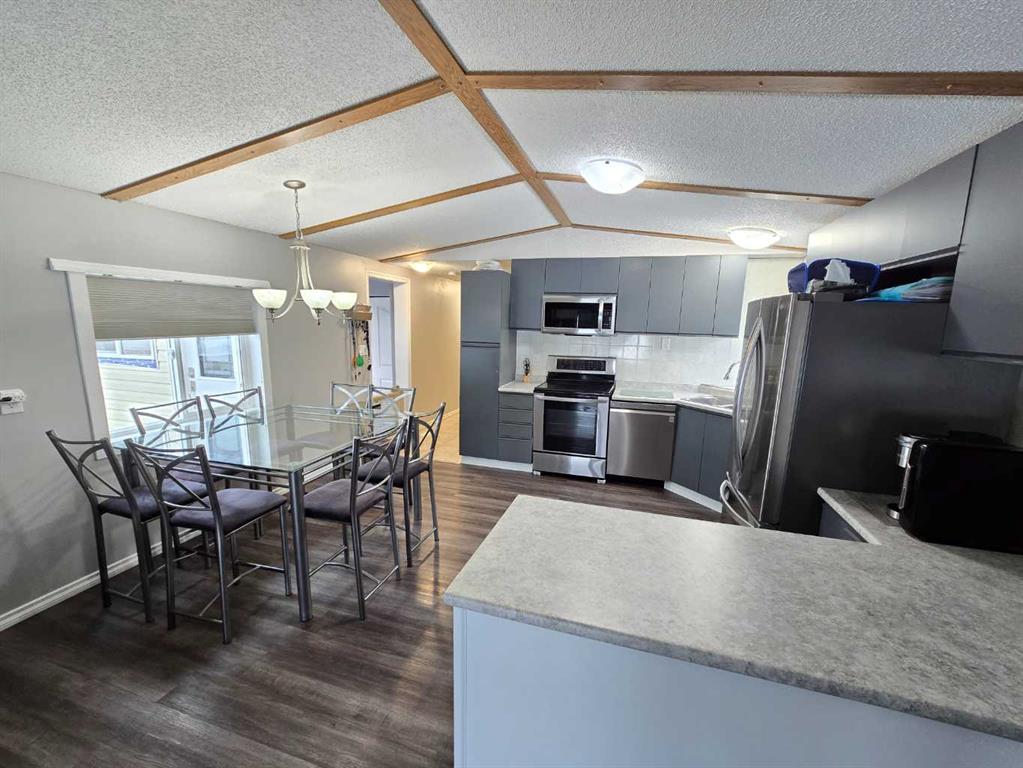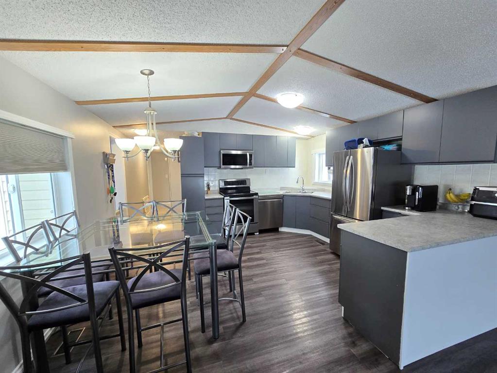 Welcome to a home that truly checks all the boxes—comfort, style, and value all wrapped into one beautifully updated property on your own land! This extensively renovated 2-bedroom, 1.5-bathroom manufactured home has been thoughtfully upgraded over the years, offering peace of mind and modern appeal. From the moment you step inside, you’ll appreciate the fresh paint, updated flooring, and an abundance of natural light pouring through newer windows and doors (approximately three years old). A durable tin roof installed around five years ago adds to the home’s long-term reliability. The open-concept main living area creates an inviting and functional space perfect for everyday living and entertaining. The spacious kitchen flows seamlessly into the dining area and bright living room, making it easy to stay connected with family and guests. Updated appliances and plenty of workspace make the kitchen both practical and enjoyable. Both bathrooms have been tastefully refreshed, offering clean, bright finishes that enhance the overall feel of the home. The smart layout continues with two comfortable bedrooms and the convenience of a 1.5-bath configuration. An added bonus is the thoughtfully designed addition, providing excellent extra storage space—ideal for keeping everything organized and out of sight. Step outside and enjoy a fully fenced yard, perfect for kids, pets, or simply relaxing in your own private space. The deck is ready for summer BBQs and quiet evenings, while the large shed offers even more storage for tools, equipment, or seasonal items. Meticulously maintained and truly move-in ready, this home is “neat as a pin” and shines with pride of ownership throughout. Whether you’re a first-time buyer, downsizing, or looking for an affordable property without compromising quality, this is an opportunity you won’t want to miss!