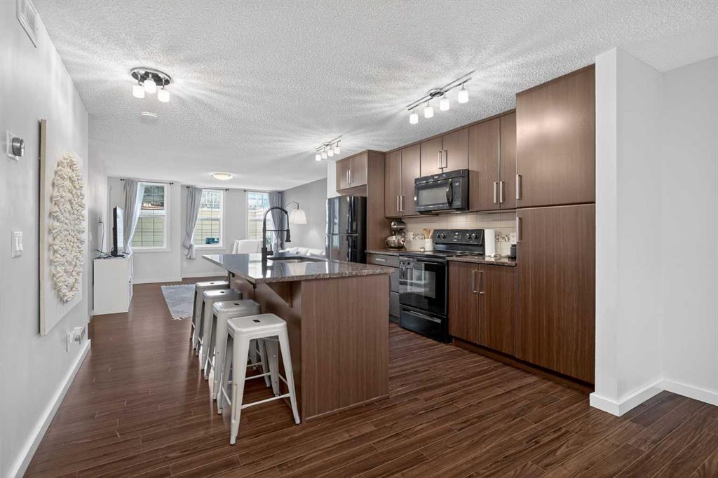 Step inside to a bright and spacious open concept layout designed for both everyday living and entertaining. The kitchen is thoughtfully upgraded with elegant granite countertops, sleek black appliances, and plenty of workspace to inspire your inner chef. Durable laminate flooring flows throughout the main living area, combining modern style with easy maintenance.