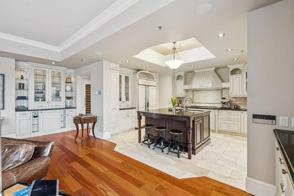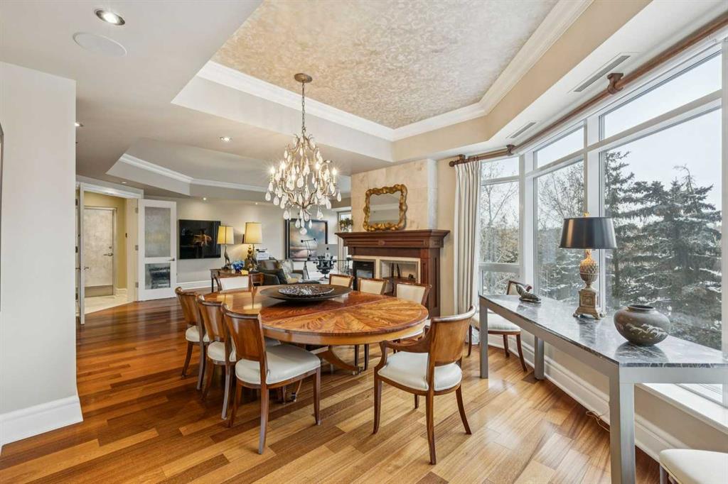 Welcome to Princeton Grande, one of Calgary’s most prestigious & exclusive riverfront addresses in the heart of Eau Claire, perfectly positioned along the Bow River & directly across from the natural beauty of Prince\'s Island Park. This extraordinary 3,065 sq. ft. private sub-penthouse offers an exceptional standard of luxury living, where timeless elegance, architectural scale & breathtaking river & park views come together to create a truly remarkable home. A private elevator opens directly into the residence, revealing expansive interiors designed for sophisticated entertaining & refined everyday living. Grand principal rooms are framed by oversized windows that capture sweeping views of the river & park, while high coffered ceilings, custom millwork, & elegant designer finishes elevate every space. The formal living room, anchored by a double-sided gas fireplace & surrounded by windows with terrace access, creates a dramatic yet inviting setting while the gracious dining room is perfectly suited for hosting memorable dinners & special occasions against a backdrop of spectacular views. The chef-inspired kitchen is beautifully appointed with granite countertops, custom cabinetry, & an expansive pantry, offering both functionality & understated luxury. Flowing effortlessly into a bright south-facing breakfast nook & a comfortable family room, with access to a private terrace ideal for outdoor dining & enjoying river views. A refined den with custom built-ins provides the perfect executive office or private library (could be used as a 3rd bedroom). The luxurious primary suite is a tranquil sanctuary featuring a spacious walk-in closet & a spa-inspired ensuite complete with a deep soaker tub, glass-enclosed shower, and dual vanities. A second bedroom with its own ensuite & large closet offers exceptional comfort & privacy for guests. Additional highlights include 371+ sq. ft of outdoor living space on two private terraces, a dedicated laundry room, central vacuum system, built-in speaker system, abundant in-suite storage, two titled underground parking stalls a short distance to the elevator, & a titled storage locker. Residents of Princeton Grande enjoy an unmatched collection of five-star amenities designed for comfort, wellness, & entertaining. These include 24-hour concierge & security, an elegant lobby with fireplace lounge, beautifully appointed guest suites, a private library & conference room, temperature-controlled wine storage with a tasting room, a sophisticated residents’ lounge with full kitchen & terrace, fully equipped fitness center, a dedicated yoga studio, steam room with change facilities, an underground car wash bay, & a private freight elevator for discreet service & move-ins. Surrounded by the Bow River pathways, steps to downtown’s finest dining, cultural venues, & vibrant urban amenities, this exceptional residence offers a rare opportunity to experience luxury condominium living at one of Calgary’s most distinguished & sought-after addresses.