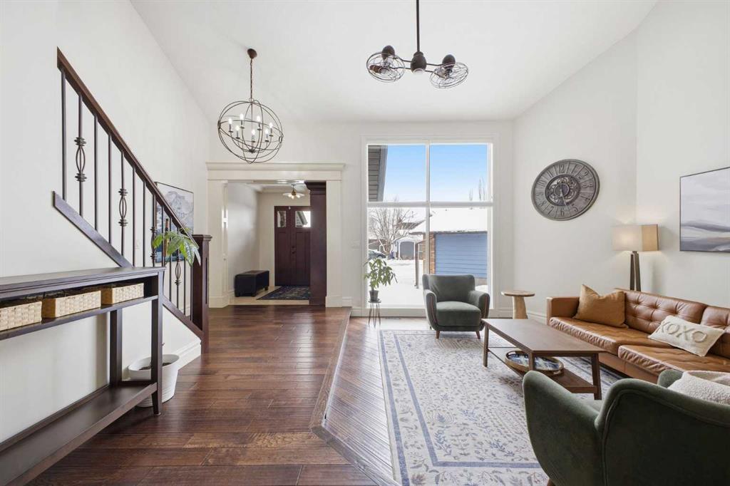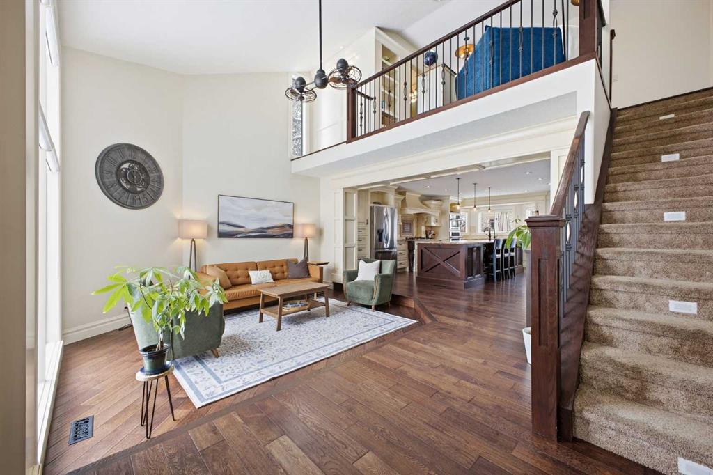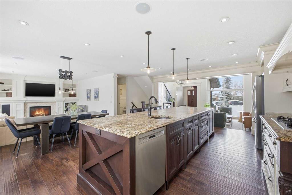 Luxuriously renovated from top to bottom, this stunning 3+2 bedroom home sits JUST STEPS FROM THE TRANQUIL PATHWAYS OF FISH CREEK PROVINCIAL PARK and offers nearly 3,700 sq ft of beautifully developed living space as well as an oversized triple attached garage. The main level features rich engineered hardwood and an abundance of natural light, beginning with a sunken living room highlighted by an oversized chandelier and dual ceiling fans. The showpiece kitchen is finished with custom millwork and cabinetry, granite countertops, a 12’ island with seating where friends and family can gather, two copper sinks, and top tier appliances including a Bertazzoni Italian gas cooktop. A spacious dining area easily accommodates family dinners or large gatherings. The sunken family room is anchored by a striking feature fireplace and custom built ins, while a private office with a coffered ceiling and herringbone tile flooring creates an ideal work from home retreat. A stylish 2 piece powder room and a generous laundry/mudroom—complete with herringbone tile, coat hooks, and individual storage cubbies—round out the main level. Upstairs, a quiet loft with an overhead skylight leads to three generously sized bedrooms and a beautifully updated 5 piece main bath. The primary suite is a true sanctuary, featuring his and hers custom closets with individually designed millwork, built in entertainment and art frames, and an elegant chandelier. The secluded 5 piece ensuite includes a large dual sink vanity, a new bathtub, and a separate shower finished with natural Italian stone and a granite bench. The additional bedrooms each offer built in closets. The fully developed basement is designed for both entertainment and wellness. A spacious media/family room features a hard wired solid wood entertainment unit, plus an entertainment nook with a wet bar, commercial grade fridge, dishwasher, storage, and wine rack. A dedicated home gym with commercial grade rubber flooring, floor to ceiling mirrors, and built in shelving provides a private space to work out. Two additional bedrooms, a 3 piece bath, and a large storage area complete the lower level. Additional highlights include central air conditioning, built in speakers throughout, a new Lennox high efficiency furnace, new AO Smith hot water tank, Kinetico water softener, Vivint/Telus alarm system, and complete removal of Poly B plumbing. Outside, enjoy the exposed aggregate front porch and a beautifully finished backyard with a deck coated with Duradeck, raised garden boxes within a gated garden area, a garden shed, and a Rain Bird irrigation system. Parking is effortless with the oversized triple attached garage, featuring epoxy flooring, a finished ceiling, EV charger, built in heater, and custom floor to ceiling cabinetry with quartz countertops. This premier location offers nature at your doorstep along with convenient access to schools, shopping and public transit.