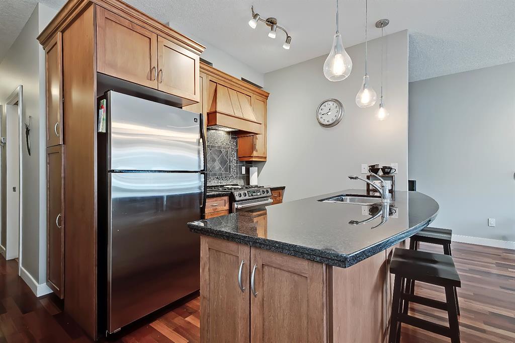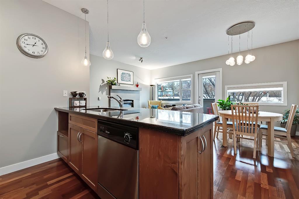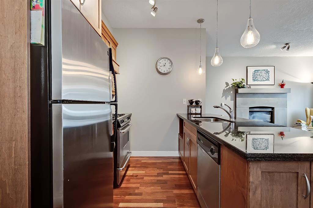 A rare opportunity to own in the exclusive GREYSTONES, perfectly positioned in the heart of Lower MOUNT ROYAL! Just steps from 17th Avenue, you’ll enjoy one of Calgary’s most vibrant & walkable lifestyles: cafés, restaurants, boutiques, fitness, nightlife - everything downtown offers - within easy reach...while still tucked into a quiet, well-managed, SECURE building! This beautifully designed 2 bedroom, 2 bathroom condo showcases HARDWOOD flooring & is filled with warm WEST-facing light, creating an inviting & comfortable atmosphere throughout the main living space. Large windows and a CONCRETE MANTLE GAS fireplace anchor the living area, offering the perfect place to unwind at the end of the day. Built in bookcase creates a corner perfect for reading or a desk for work-from-home flexibility! Open concept allows you to cook/dine/live, gaze outside at the beautiful MATURE trees in front of you (so much glass across the front of unit!) Interact with family or guests, watch TV - ALL in the same space. The deck offers extended living with privacy....plus a GAS line for your BBQ! Kitchen is both functional & refined - features NOT often found in this price point! NEW tap, NEW fridge, granite countertops, stainless steel appliances, GAS stove & excellent storage. There is a bonus 2 piece bath for convenience. The primary bedroom is complete with 4 piece ensuite that includes a huge SOAKER TUB & separate shower, ideal for relaxing after a long day PLUS a rare feature for inner city condos at this price point!! Custom wood shelving in closet. A second bedroom provides flexibility - perfect for guests, office or additional living space. IN SUITE laundry. Quality IN FLOOR heating means NO baseboard heaters! TITLED PARKING (first stall - makes unloading groceries incredibly easy!) BONUS - option to rent a second underground stall! Prefer to walk or bike - this location is unbeatable! Dedicated, secure, SAFE storage space that is TRIPLE the size of most buildings!!! With condo fees covering heat & water, enjoy a low-maintenance, lock-and-leave lifestyle in one of Calgary’s most sought-after inner-city locations! PET friendly & minutes to the Beltline, Mission & Marda Loop! CENTRALLY located - 25 mins to YYC, under 10 mins to Stampede Park & quick access west to the mountains! Incredible value - this one won’t last!
