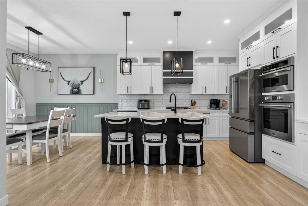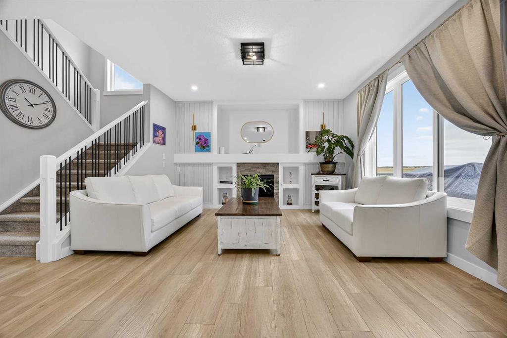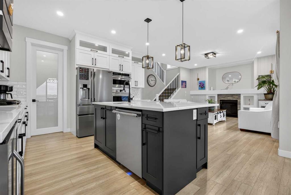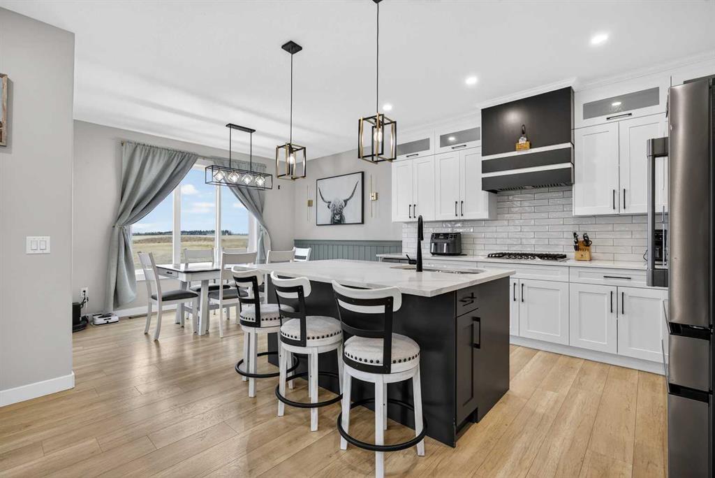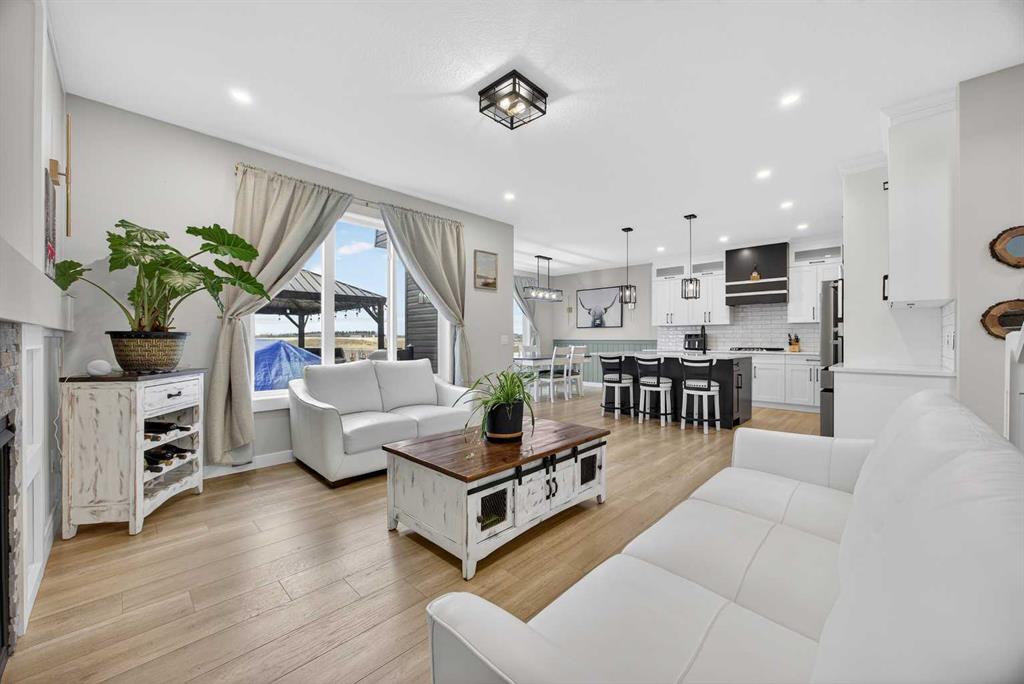 Just one year young and offering over 2,600 sq ft above grade, and 4 bedrooms upstairs, this stunning two-storey blends thoughtful design with elevated finishes — and yes, those wide-open country sunset views really are as incredible as they sound. Expansive rear windows flood the open-concept main floor with natural light while framing miles of prairie landscape… your evening routine just found its new favourite backdrop. The main level welcomes you with a spacious front entry and versatile flex room perfect for a home office, salon, playroom, or whatever your life needs today. The living room anchors the space with a feature fireplace, while the oversized dining area opens to the expanded upper deck with gas line and convenient access to the yard below — ideal for summer entertaining that lasts until the sun dips below the horizon. The kitchen? Equal parts stylish and seriously functional. Gas cooktop, built-in oven and microwave, beverage fridge, and an abundance of workspace… but the pièce de résistance is the show-stopping walk-through pantry with a full wall of wood shelving leading directly to the triple garage entry. This practical drop zone includes open locker-style hooks and shelving designed for every season of gear. A powder room completes the main floor. Upstairs is where this home truly shines for families — FOUR bedrooms on one level (yes, all upstairs!) plus a massive bonus room with an abundance of cabinetry and a second fireplace. The primary suite is a retreat of its own, featuring a spa-inspired ensuite with dual sinks, glass/tile shower, soaker tub, and a walk-in closet that absolutely lives up to the hype. Two bedrooms share a convenient central bath, while the fourth bedroom and additional full bathroom provide flexibility for guests, teens, or multigenerational living. The fully finished walkout basement continues the theme of space and versatility, offering a large bedroom, full bathroom, and an expansive rec area with room for both movie nights and games or fitness space. The long wet bar with second beverage fridge ties it all together — because entertaining should be effortless. Outside, the yard is spacious, functional, and ready for summer… but let’s be honest, it’s the uninterrupted sunset views over open fields that make this property unforgettable. A nearly-new home, 4 bedrooms up, fully finished walkout, triple garage, and views that never get old — with just the right amount of sass and a whole lot of class. Virtual tour available in link. Call your favourite local REALTOR to check this spectacular property out today!