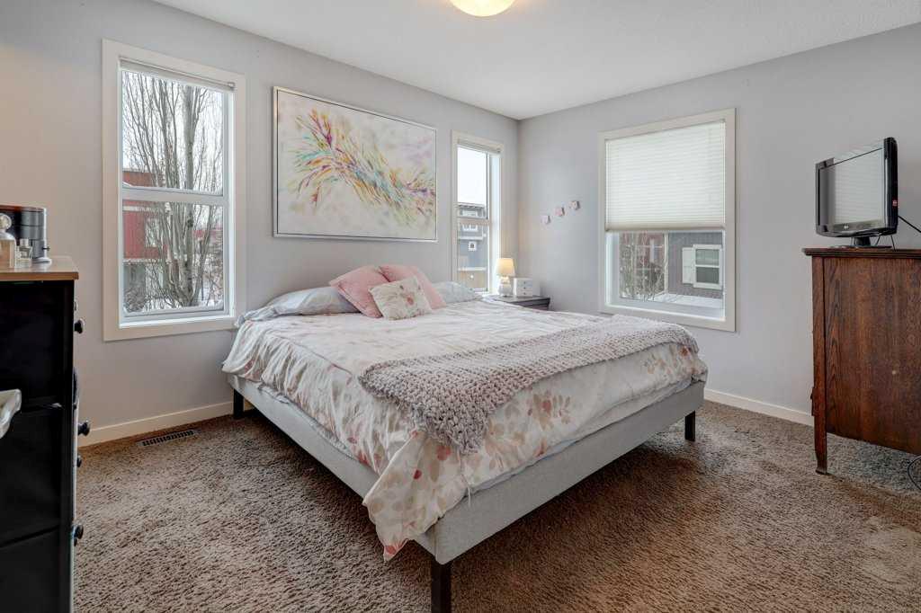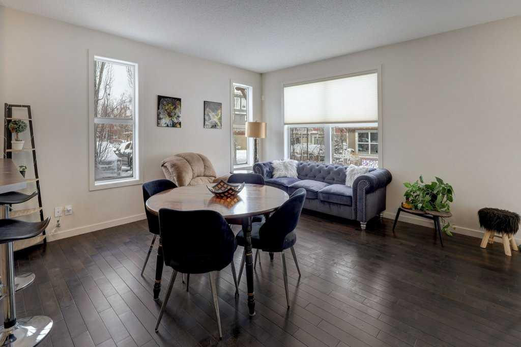 Gorgeous END unit townhome facing a green space and perfectly located in the heart of Auburn Bay! You are greeted with gleaming hardwood floors as you enter, through the living room & kitchen area with plenty of windows for loads of natural sunlight! Bright and Sunny! Functional kitchen with plenty of cabinet & counter space, mosaic tiled backsplash, raised breakfast bar & stainless-steel appliances. The second level features a master bedroom with walk in closet & ensuite bath, a second bedroom & another full bathroom. Up to the third level & you will find a huge, sunny loft/bonus room area that can be used as a rec room, bedroom, etc. The lower level is also fully finished with a rec room and another full bathroom as well as some storage space and laundry area. Front patio area is perfect for BBQing & entertaining! This home is steps to the school and a short trip to all the areas amenities, Deerfoot & Stoney Trails, transit, hospital, parks, pathways, theatre AND the lake!