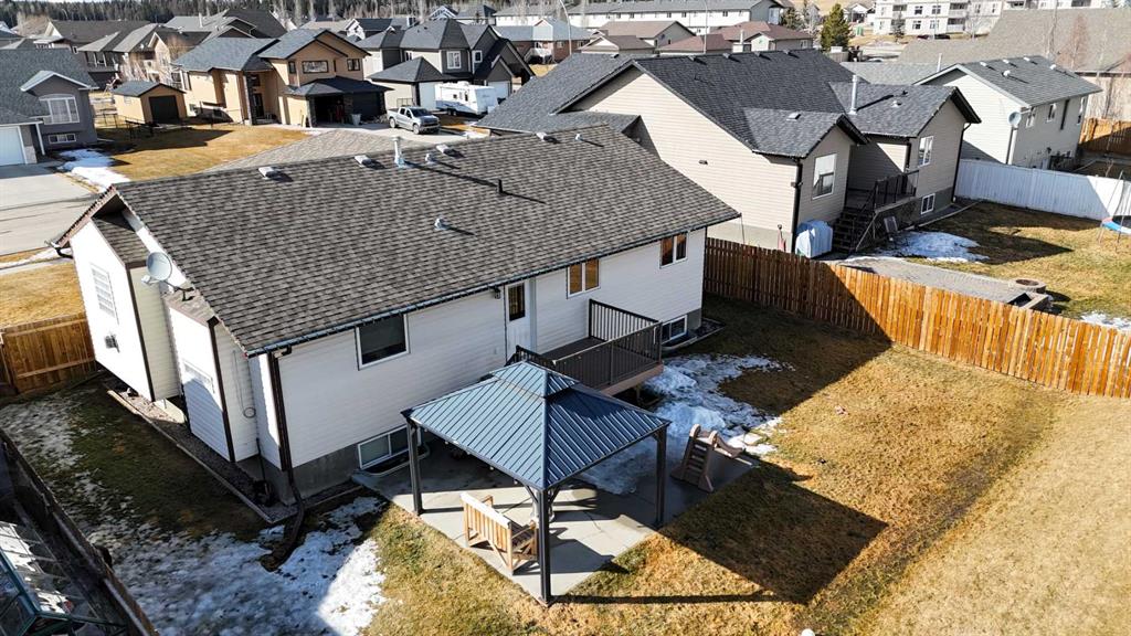 Designed with family living in mind, this spacious bungalow offers a bright open-concept main floor perfect for everyday living and entertaining. The stylish kitchen features granite countertops, a large center island, newer stainless-steel appliances, and rich hardwood flooring that flows throughout the main living area. The inviting living room is filled with natural light from large windows and showcases a cozy gas fireplace, creating a warm and welcoming atmosphere. The main level also includes a generous primary suite with walk-in closet and private 3-piece ensuite, along with two additional bedrooms and a full 4-piece bathroom. A convenient mudroom and laundry area with laundry sink adds extra functionality for busy households. Downstairs, the fully finished basement provides even more living space with a large family room, two additional bedrooms, a home office, a 3-piece bathroom, and plenty of storage. The family room is also pre-plumbed for a future wet bar, offering great potential for entertaining. Recent updates include new thermostat, fresh paint on ceilings and walls in the main living area, custom framed mirrors in all bathrooms, plumbing fixtures under-cabinet lighting, thermocouple on both hot water tanks replaced, and a sump pump with battery backup. Step outside to enjoy the fully fenced private backyard with new fencing, a composite deck, and concrete patio with covered Gazebo, perfect for summer gatherings and relaxing evenings. Ideally located close to walking trails, parks, recreation facilities, and the new hospital, this home offers both comfort and convenience in one of Edson’s sought-after neighbourhoods.