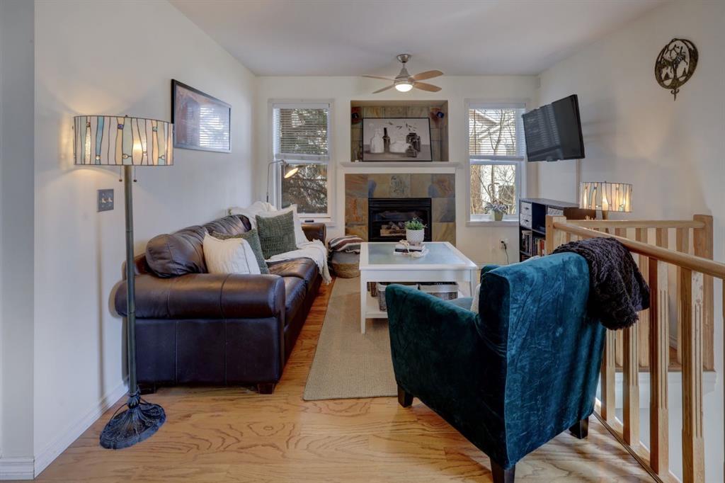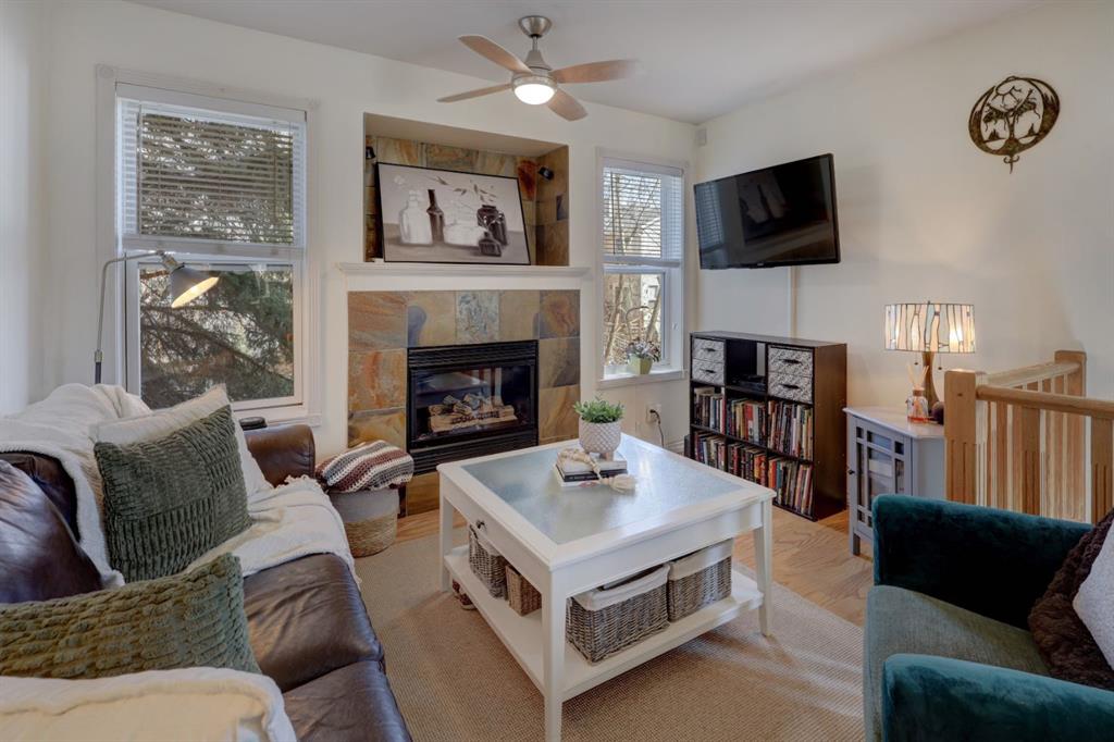 Offering over 1100 sq ft of thoughtfully designed living space, this bright end-unit is filled with natural light thanks to its additional windows. The main level features an open-concept layout ideal for both everyday living and entertaining. The spacious kitchen showcases abundant cabinetry, generous counter space, and an oversized island—perfect for casual dining or hosting guests. The eat in kitchen offers versatility to accommodate a dining table or home office. The inviting living room is anchored by a cozy gas fireplace, creating a warm and welcoming atmosphere. The main floor is complete with a generously sized primary bedroom featuring an oversized closet, along with a beautifully updated bathroom just steps away. The fully finished walk-out basement offers a bright and open feel, with large windows that flood the space with natural light. This level includes a spacious family room, an additional bedroom, and a full bathroom—ideal for guests or extended living. From here, enjoy the rare convenience of direct access to your heated underground parking stall, providing comfort and ease year-round. Additional highlights include main floor laundry, extra storage just outside the unit, two private outdoor patio/terrace spaces, and a well-managed, pet-friendly complex. This exceptional home truly has it all—don’t miss your opportunity to make it yours. Book your private showing today!