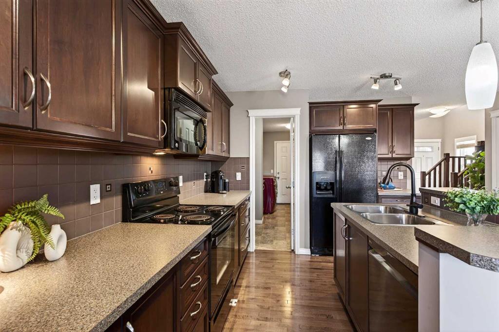 Where to even begin! So many features... Starting outside, you’ll love the impressive 29’ front driveway and the beautifully finished backyard featuring stamped concrete and a gas line for effortless BBQing. The yard offers plenty of space for kids to run and even the potential to add a garage or shed (with approval). The exterior has been extensively updated with a newer roof and flashing, replaced siding along the north side, plus new gutters and downspouts. Durable metal cladding at the front adds a modern touch while keeping maintenance simple—just posts and a beam to paint. Additional features like custom window well covers and a recently serviced A/C add to the home’s comfort and peace of mind.