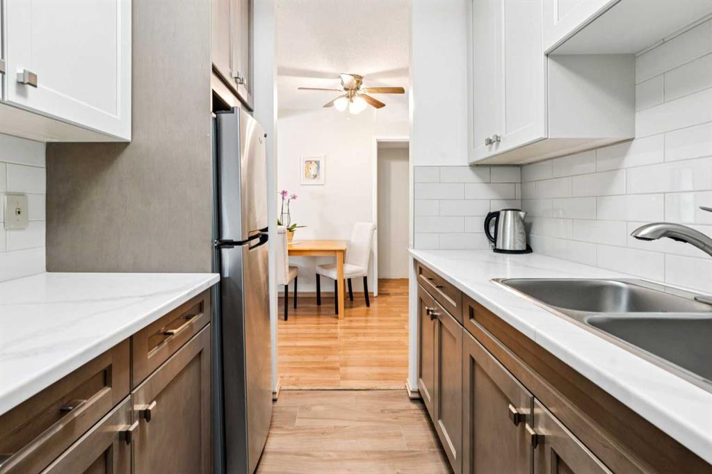 Like Living in a Park! Mature Trees grace the grounds of this well-maintained complex in the Heart of Amenity-rich Acadia. Sunny 2 Bedroom END Unit Townhome with Stunning NEW Custom Kitchen Renovation - OVER $35,000 - Knockdown Ceilings, Quartz Counters, STAINLESS STEEL Appliances & Gorgeous HIGH QUALITY Soft Close Cabinetry with X-TRA Height Upper Cabinets & Dovetailed drawers. Two Spacious Upper Bedrooms with TREED Views, a large Bathroom with newer toilet, shower head & flooring, a Private Fenced Yard, lots of extra storage space in the basement & 1 nearby Parking stall with Plug-in. Updated Vinyl Windows, Newer Hot Water Tank (2 years), Professionally Managed with Affordable Condo Fees ($312.36) that Include Water & Sewer, & it\'s PET-FRIENDLY too! Let’s talk Location - a Short Walk to Schools, Area Shops & Restaurants, the Tennis Academy, Acadia Recreation Complex, Aquatic & Fitness Centre, Transit & More!
