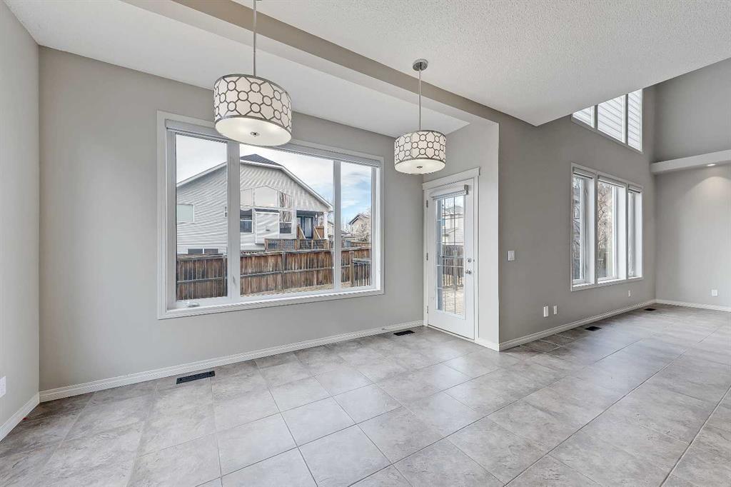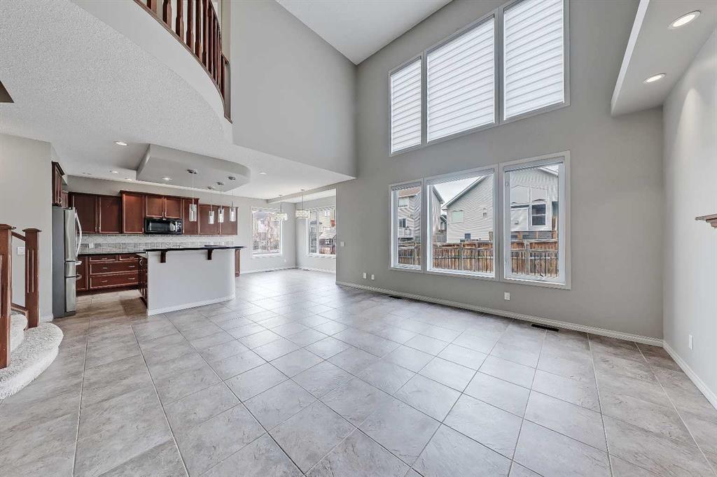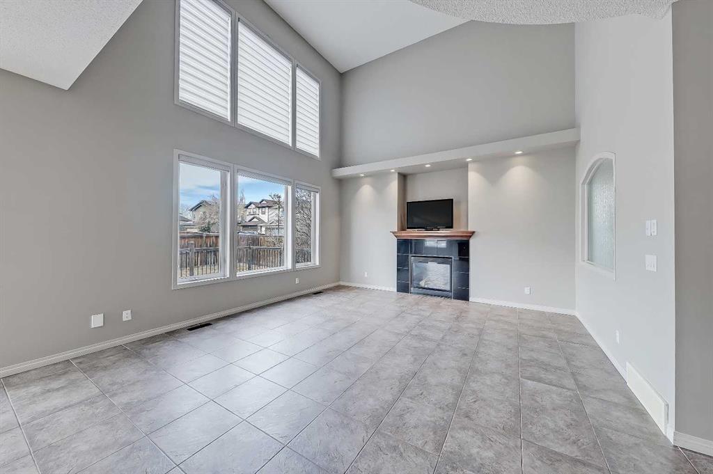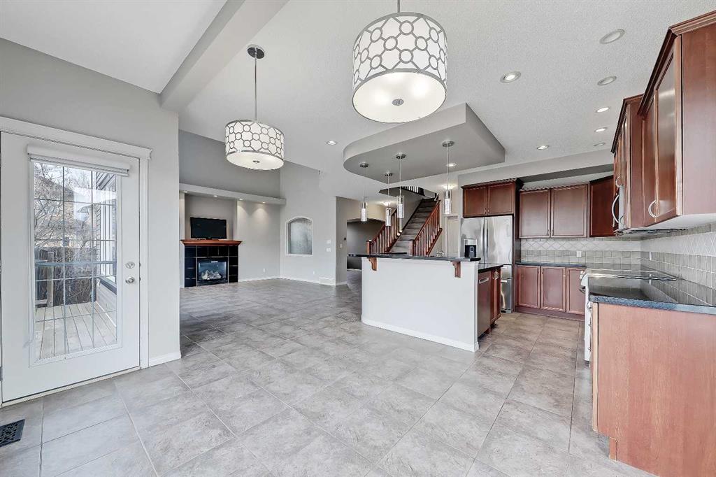 Located on a corner lot with a West-facing backyard in the established lakeside community of Chestermere, this spacious two-storey home features over 3,900 sq. ft of total living space, including 6 bedrooms (4 beds up!), a fully developed basement, and an enormous triple heated attached garage with epoxy floors! This home is ideal for large or multi-generational families, professionals working from home, or buyers seeking generous space both inside and out. The main floor features 9-ft ceilings and tiled flooring throughout. A bright front office with double glass doors and LVP flooring provides a dedicated workspace. The open living area features an 18-ft vaulted ceiling and a gas fireplace with a tile surround and mantel. A large formal dining room with a feature ceiling detail and hidden lighting sits nearby. The kitchen includes maple cabinetry, stainless steel appliances, black quartz countertops, a large walk-in pantry, and a secondary eating area overlooking the backyard. A discreet powder room and a dedicated laundry room with built-in cabinetry and sink complete the main level. From here, easily access the oversized heated triple garage with epoxy flooring. Upstairs, LVP flooring continues throughout. The spacious primary bedroom features a 6-pc ensuite with a tiled walk-in shower with a bench and dual shower heads, a jetted soaker tub with a waterfall feature, dual vanities with a built-in makeup station, a skylight, and a separate water closet. The ensuite connects to a large walk-in closet with built-in shelving. Three additional bedrooms, a full bathroom, a large bonus room, and extra linen storage complete the upper floor. The fully finished basement expands the home’s versatility with a large recreation room and a wet bar featuring quartz countertops and a full-height tile backsplash. Two additional bedrooms with walk-in closets and large windows are located on this level, along with a full bathroom featuring a custom-tiled shower with body jets, a rainfall showerhead, and a glass enclosure. Mechanical features include two furnaces, two hot-water tanks, and two air-conditioning units. The sunny West-facing backyard includes a large deck with a gas line for a BBQ. Chestermere offers a unique lakeside lifestyle just minutes from Calgary. Residents enjoy year-round access to Chestermere Lake, including beaches, walking pathways, water sports, and winter recreation. Families benefit from nearby schools, including Prairie Waters Elementary School and Chestermere Lake Middle School. Chestermere Public Library is just close by. Everyday amenities, including grocery stores, restaurants, and services, are available within the city, while quick access to Calgary makes commuting simple. Multiple parks, playgrounds, and recreational facilities throughout the community support an active and family-friendly lifestyle.