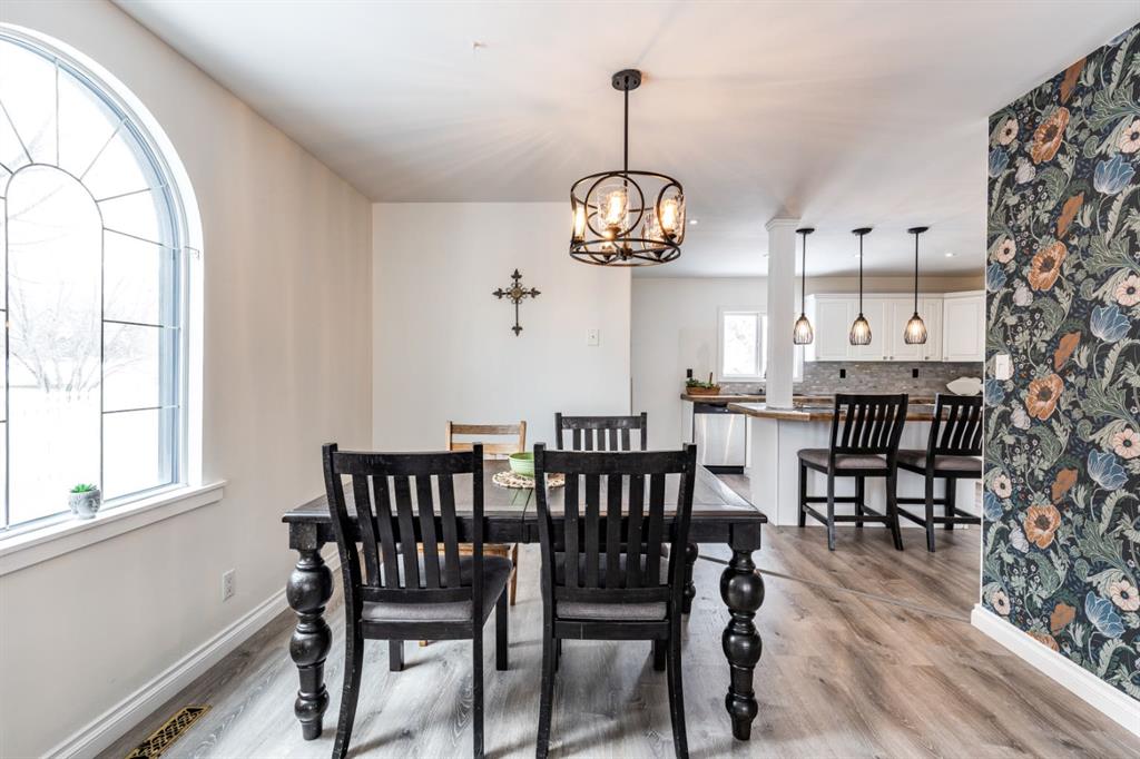 Updates include: vinyl plank flooring on the main floor (2024), shingles, soffit, and fascia (2022), high-efficiency furnace, hot water tank, updated electrical, paint, and wallpaper.