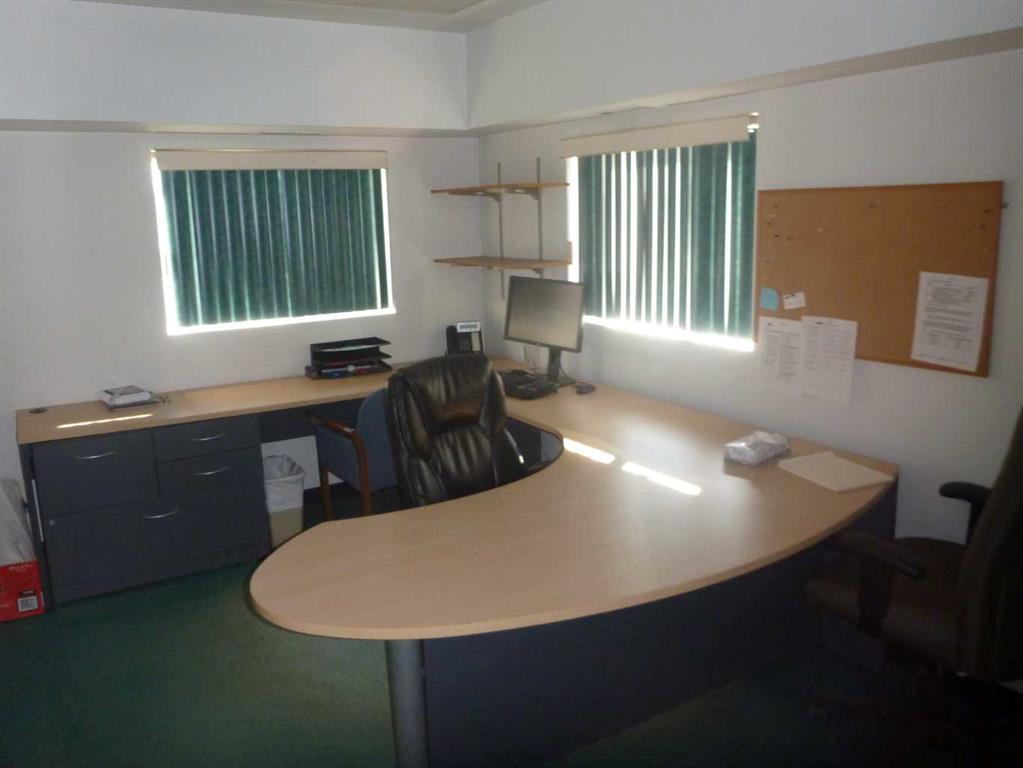 4800 Square Foot Industrial Shop for sale in Slave Lake. Shop area is 3,600 square feet and has three 16\' x 14\' overhead doors and a ceiling height of 18\'. 200 AMP 3 Phase power in shop. Make-up air in shop. There is 1,200 square feet of office space on the main floor and it consists of 4 offices, a large reception area and a 2 piece bathroom. This office area has air conditioning. There is a 1,200 square foot mezzanine with a staff room area, a storage room, a 2 piece bathroom and the mechanical room. There is paved parking in the front of the building and a mix of paved and gravel in the rear. Water is Municipal and the building has 2 meters. The septic system is Municipal. It goes to a holding tank with a grinder pump. This property is zoned M-2, which is Heavy Industrial.