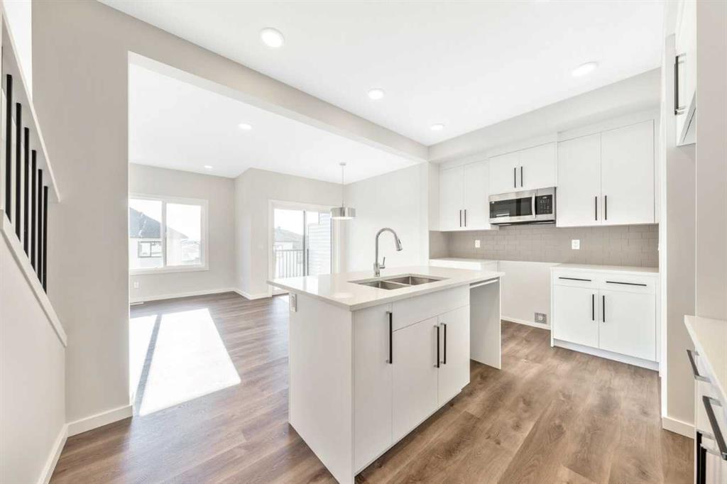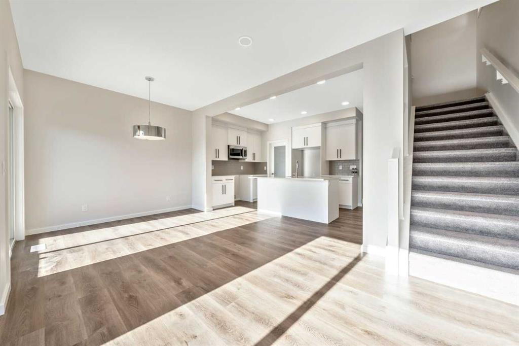 The Eden is designed for contemporary living. Entering this home, you are welcomed by a half bath, closet and convenient walk-through mudroom and pantry leading to the central kitchen. The main floor opens up to reveal a spacious great room and dining area, leading to the covered balcony - a perfect retreat to enjoy year round. The second level boasts a primary bedroom with ample space, including an ensuite offering dual sinks and adjacent walk-in closet. Upstairs also offers two secondary rooms, a bathroom, and laundry area. To round out this home, the attached double-car garage provides secure parking and additional storage space. Enjoy breathtaking mountain scenery from both the covered main floor deck and primary bedroom. Your 9-ft walkout basement with a south-facing backyard brings in abundant natural light throughout the day. The mudroom and walk-through pantry are designed for convenience and organization, with melamine shelves for structure and style. The attached double-car garage (18’ x 22’) for added convenience and secure parking. There are no condo fees – enjoy maintenance-free living without extra monthly costs. Functional second-floor laundry area featuring a side-by-side washer and dryer. Open-concept main floor with 9\' ceilings and expansive windows that bring in abundant natural light. Photos are representative.