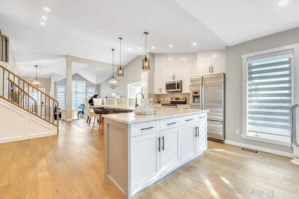 Let’s start outside. One of the best features of this home is the view both front and back. At the front, you’re greeted with beautiful views of downtown Calgary. At the back, your backyard is perfectly set up for summer hangouts or cozy fall and winter nights, all while enjoying that same skyline. You get the view, but you’re tucked away from the noise and busyness.