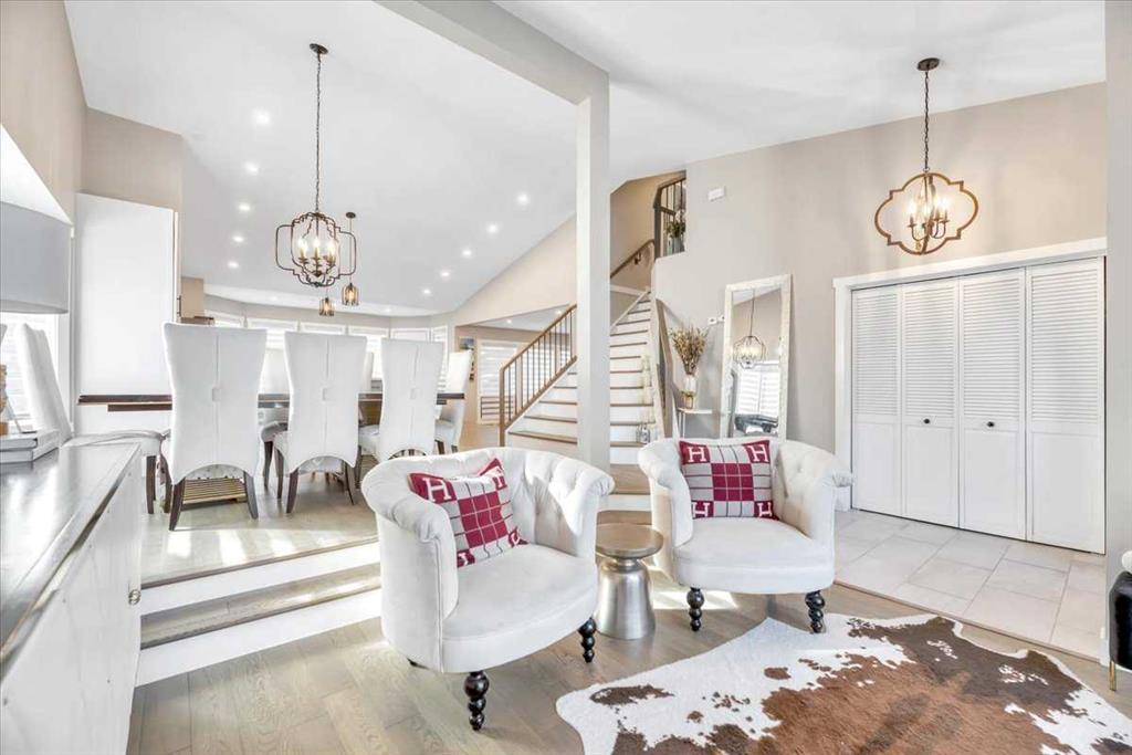 As soon as you walk in, you’re welcomed by a space that feels open, yet still defined and inviting. The main entry gives you a generous receiving area, easily big enough for a piano paired with a grand staircase that’s angled just right to warmly welcome you home.