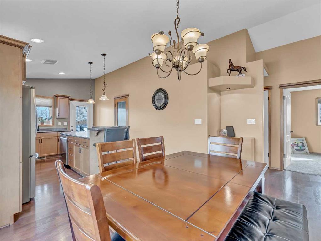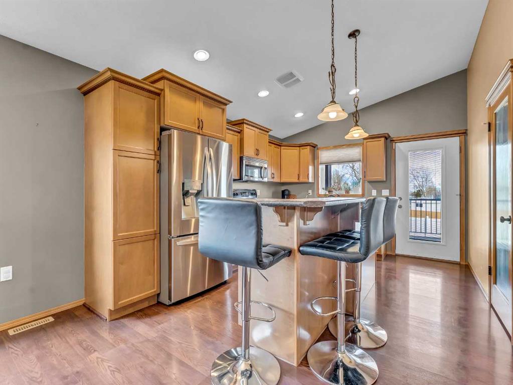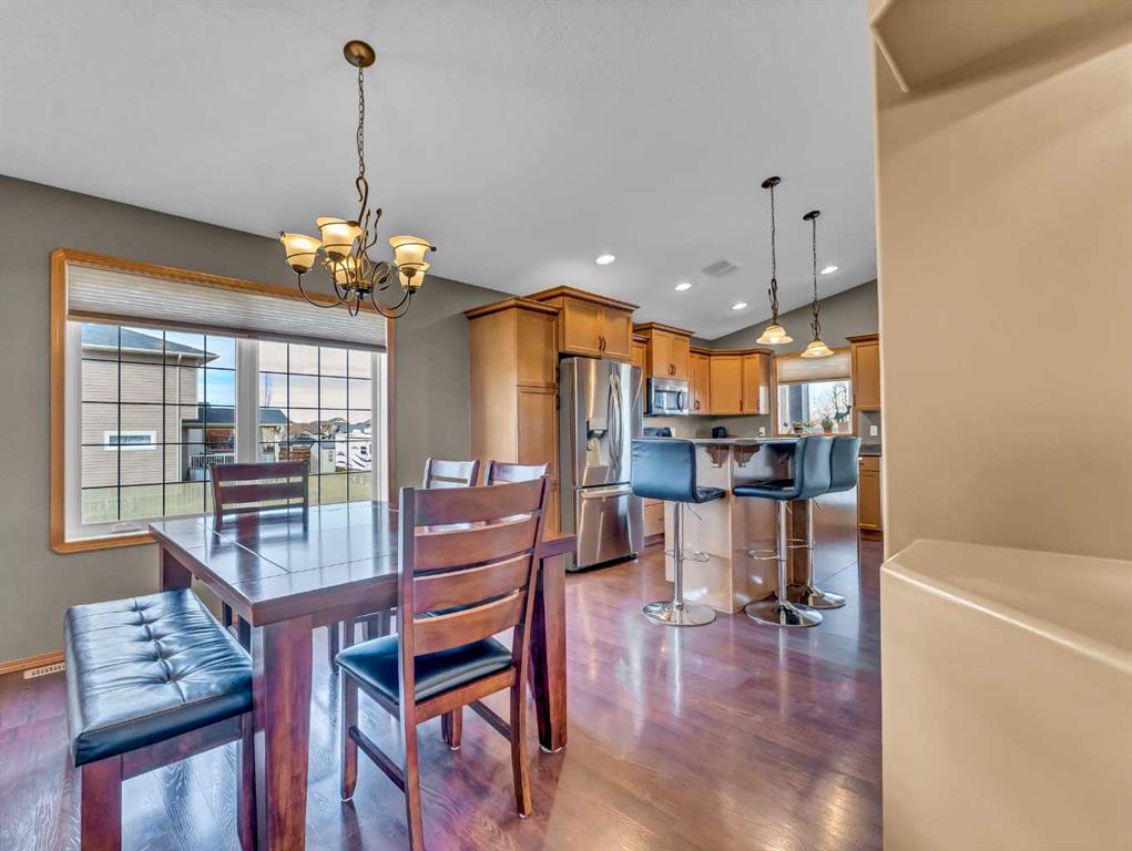 Welcome to 57 Hamptons Close SE — a beautifully maintained modified bi-level perfectly situated on a desirable corner lot with convenient RV parking! This move-in ready home offers a functional and inviting layout with vaulted ceilings that create a bright and spacious feel. The main floor features two bedrooms, including the primary, along with a full 4-piece bathroom. The large dining area flows seamlessly into the kitchen, which is equipped with maple cabinetry, stainless steel appliances, a pantry, and a central island with eat-up seating — ideal for both everyday living and entertaining. Step outside to the covered back deck and enjoy easy access to the fully fenced yard with dedicated RV parking. Just a few steps up, you’ll find a generous bonus family room located above the garage — the perfect space for a media room, playroom, or additional living area. The fully developed lower level is bright and welcoming, featuring a spacious family room with a beautiful corner gas fireplace, a third bedroom, a 4-piece bathroom, and a large laundry room with plenty of space for storage. Completing the home is a double attached garage that is finished and heated, adding comfort and convenience year-round. Located in a great family-friendly neighbourhood, this home has been lovingly cared for and is truly move-in ready — the perfect fit for a young family!