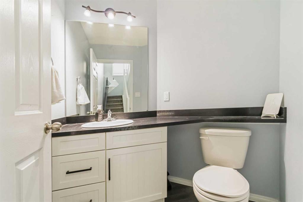 The kitchen is both stylish and practical, with ample counter space and crisp white cabinetry complemented well by elegant black stainless steel appliances. The double-oven stove and 4-door fridge are such a great plus for those who love to cook and host. A convenient 2-piece powder room completes this level.