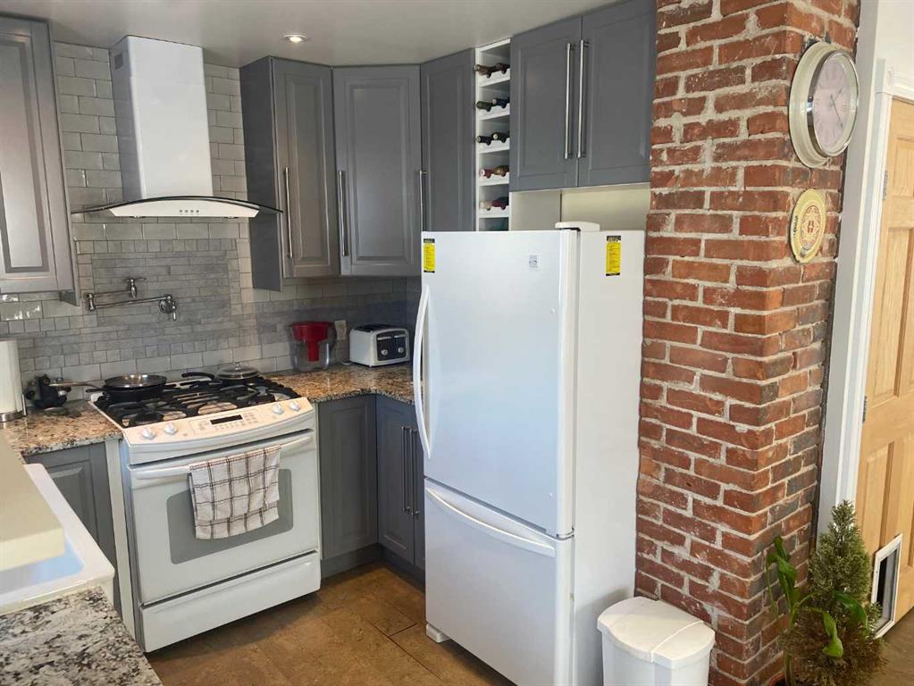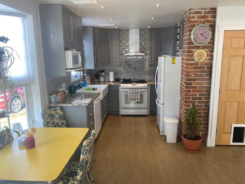 This great character home is very cute, and ready for you. It has been totally refinished and upgraded in the past 12 years. As you drive up you will notice the new shingles, soffit and eavestrough, and windows. The home has had fresh paint, new deck, new electric panel and wiring through out. The home has been updated with spray foam insulation, basement has been resealed with blueskin and plastic, so no water issues. You have new hot water tank and high efficiency furnace with a component for air conditioner. When you enter the home you will be met with high end cork floors, modern colors and great kitchen. The beautiful kitchen boasts a gas stove, with pot taps, large sink, and great lighting. The Cabinets are gorgeous and the tile backsplash pulls it all together. The living room features gorgeous hardwood floors, and amazing wood fireplace. You also have great patio doors to the south. The bathroom is very modern with rain shower, heat lamp provision and tub. Upstairs you will find 2 large bedrooms with beautiful hardwood flooring, large walk in closets and tonnes of storage that wraps around the home. All of this on a double lot, and with taxes that are an incredible $623....the home shows that it has been loved and cared for. This quality of home does not come along often,,, Woking is 55 km from Grand Prairie, has its own fire station, its own water, which is good water, and the school has been repurposed into the hub of the town for many activities! Call to view today