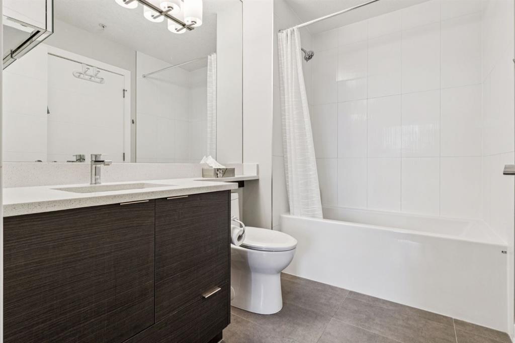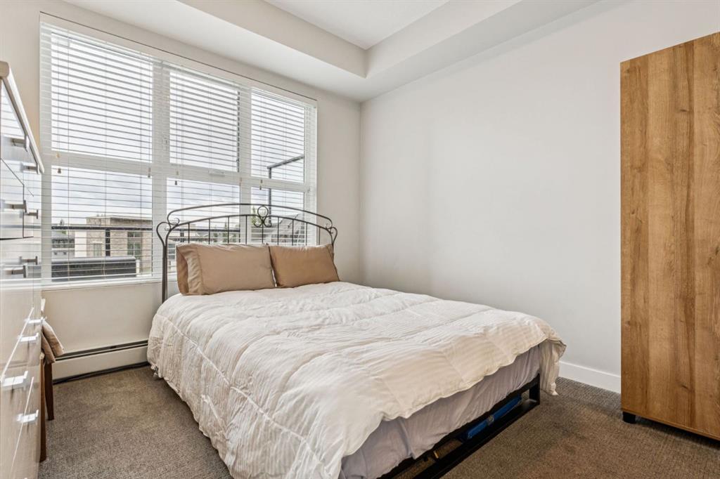 PREMIUM Top-Floor Living with 12FT Ceilings in the Urban Sanctuary of Currie Barracks! Nestled amongst Million-Dollar Homes these 4th Floor Condo’s are designed for the distinguished buyer. This Top Floor ONE Bedroom+ DEN (FLEX RM) -1 Bath Configuration are RARELY offered. Generous West Natural Light that stands out for this condo while Neutral & Modern toned Luxury Vinyl Plank floors combined with BEAUTIFUL European-Inspired Kitchen, the throughout are TOP NOTCH & Well maintained with Gorgeous Quartz Countertops, two-toned cabinetry, new LED lighting & HEX backsplash all tastefully combine for a Luxurious feel. Sleek Appliance package includes Fisher-Paykel fridge with Gas Stove too! Pull up to the eating bar or room enough for a small table, as desired. Main Living area enjoys the Exclusive 12 FT Ceilings only found on the top-floor! Large nearly 12 x 12 living room with New FAN/remote with ample space enough for relaxation. Enjoy watching Calgarys always-changing WESTERLY weather systems from your BRIGHT OPEN Balcony/deck. Luxe Carpeted Master Bedroom with Walk-thru closet to cheater 4pce Ensuite. Stackable in-suite Laundry and extra storage as well. 2nd Bedroom/Flex/Den with new LED lighting fixture, nearly 9 x 9FT to be used as desired. Extra Pantry storage recently added off-kitchen. Fantastic & Well-maintained Common Areas interior/exterior. throughout the grounds for the furry friends in this pet-friendly complex. Recently painted COMMON AREAS, Regular Bldg maintenance includes Window cleaning, Plumbing, Parkade Cleaning, Secured Titled Underground heated Parking stall with ample visitor parking (guests can be buzzed in) with lockable storage cage. Bike Room Storage, Car wash for residents and coin-op soap dispenser. Quick access to downtown, MRU, minutes to Amenities of Garrison Woods, neighbourhood restaurants/pubs, Glenmore Trail, Stoney Trail, or great investment for the University Students. Eclectic mix of residents, young professionals, established folks for this Premium condo complex!