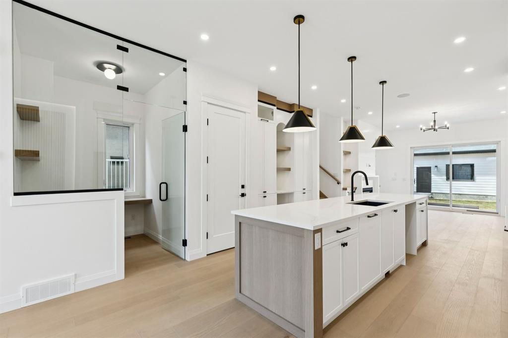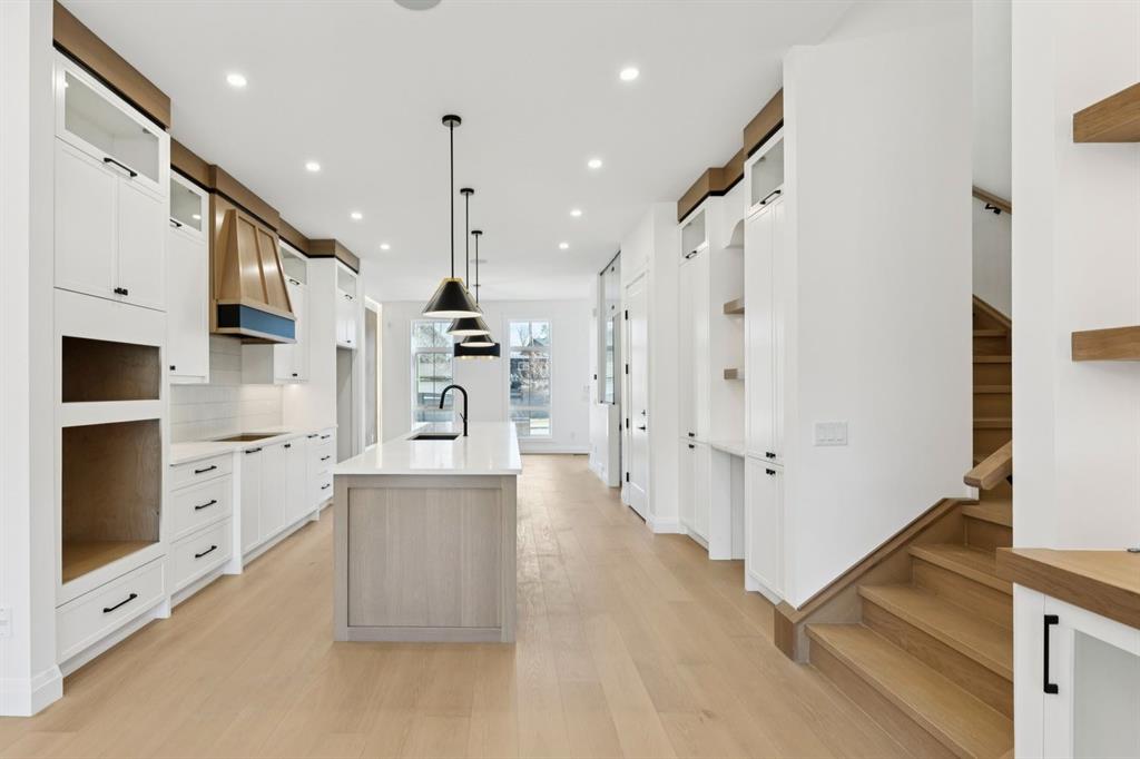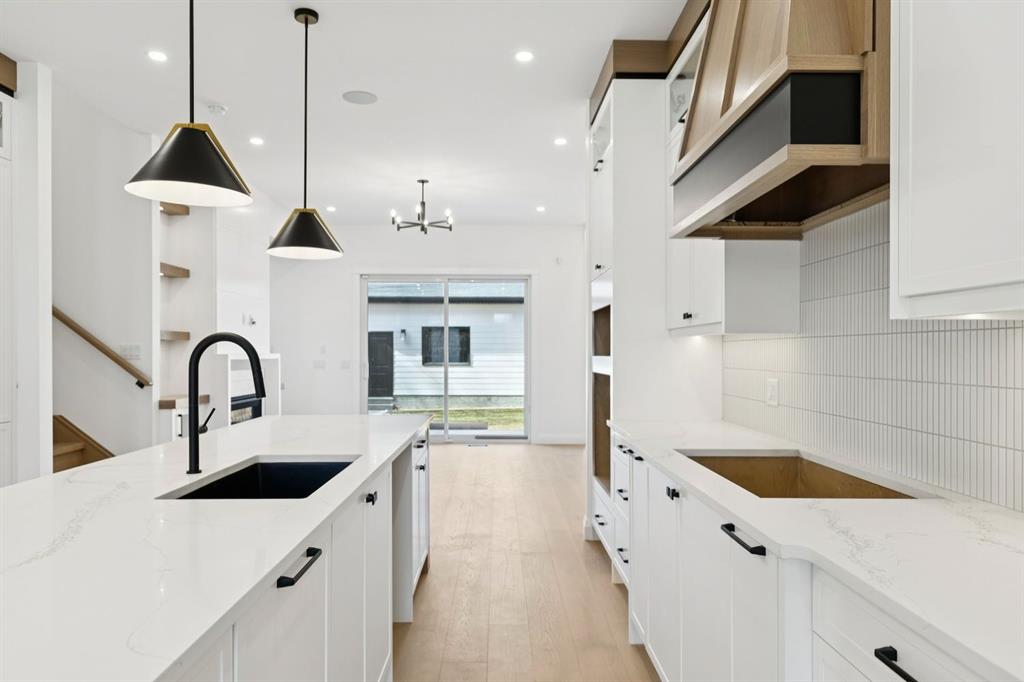Situated just steps from the Bow River in the highly sought after community of Parkdale, this sophisticated modern residence offers over 3,600 sq ft of beautifully curated living space, blending elevated design with exceptional functionality. The bright, open concept main floor welcomes you with a spacious entry and a stunning front dining area, highlighted by an illuminated feature wall that adds warmth and architectural interest. A glass enclosed office provides a perfect work-from-home setting, while the heart of the home, an exquisite designer kitchen, impresses with an expansive 10’ quartz waterfall island, built-in wall oven and microwave, gas cooktop, and sleek cabinetry. Striking glass panelled black fronts anchor the cooking space, complemented by crisp white shaker cabinetry for a refined modern aesthetic. A thoughtfully designed pantry with bar area and beverage fridge enhances both form and function. At the rear, the airy living room with a contemporary gas fireplace opens effortlessly to the west facing backyard and low maintenance deck through sliding glass doors. The second floor offers three generous bedrooms, each with its own walk-in closet, a full bathroom, and a well appointed laundry room with sink. The primary sanctuary features floor-to-ceiling windows, a striking feature wall, and a custom walk-in closet. The luxurious 6pc ensuite boasts heated floors, a steam shower, and a deep soaker tub for a luxurious escape. The third floor loft is exceptional offering incredible versatility and elevated living. Enjoy a built-in desk area, convenient coffee bar, and a front balcony with downtown views. This level also hosts a second primary suite, complete with a private rear balcony, walk-in closet, and a lavish 6pc ensuite with heated floors, a deep soaker tub, and an oversized glass shower. The fully developed basement features a separate entrance leading to a legal suite. This thoughtfully designed space includes two spacious bedrooms, a 4pc bathroom, its own laundry, and a stylish kitchen with warm wood cabinetry, eat-up island, and full appliance package. The inviting living room is anchored by a modern media wall, while access to the utility room reveals a tankless hot water system. Outside, the landscaped yard offers ample green space for kids and pets, and leads to a double detached garage. Additional upgrades include rough-ins for security, AC, and central vacuum, along with exposed aggregate steps and walkways. Ideally located, you’re just steps to Foothills Medical Centre, and only minutes from Alberta Children\'s Hospital and the vibrant University District, offering an incredible mix of dining, shopping, and everyday amenities. Surrounded by parks, pathways, cafés, and the natural beauty of the Bow River, this exceptional home delivers the perfect balance of luxury, comfort, and convenience.