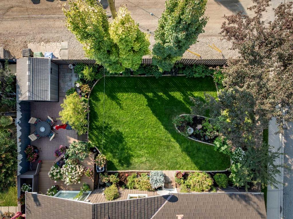 Welcome to this impeccably maintained bungalow in Calgary’s Southwood community—where timeless mid-century design meets thoughtful modern updates and truly exceptional outdoor living. Set on a prominent corner lot, this 1,100 sq ft home has been lovingly cared for by the same owner for over 40 years. The pride of ownership is undeniable, beginning with the extraordinary landscaping—lush, layered gardens, mature trees, and beautifully designed patio spaces that create a private, sun-soaked retreat in the south-facing backyard. Inside, the home offers a rare and intentional blend of preserved mid-century character and modern comfort. Rich wood ceilings, clean architectural lines, and statement design elements have been carefully maintained, while key updates—including the kitchen, flooring, and windows —enhance everyday living without compromising the home’s original charm. The kitchen is both functional and striking, featuring a large island, updated cabinetry, quartz counters and a bold design aesthetic that connects seamlessly to the dining and living spaces—perfect for gathering and entertaining. The main floor features three bedrooms, including a primary suite with a 2-piece ensuite and a large picture window overlooking the backyard oasis—bringing the outdoors in. The fully developed basement expands your living space with a massive recreation room, a 3-piece bathroom, and a second full kitchen—ideal for canning, preserving, or hosting larger gatherings. Ample storage is found throughout. Additional updates include a furnace and central A/C (2015), offering year-round comfort. Located with convenient access to major routes, this home remains remarkably quiet and peaceful—both inside and in the garden—offering a unique balance of accessibility and tranquility. A rare opportunity to own a home where design, care, and outdoor beauty come together in one of Calgary’ established southwest communities.