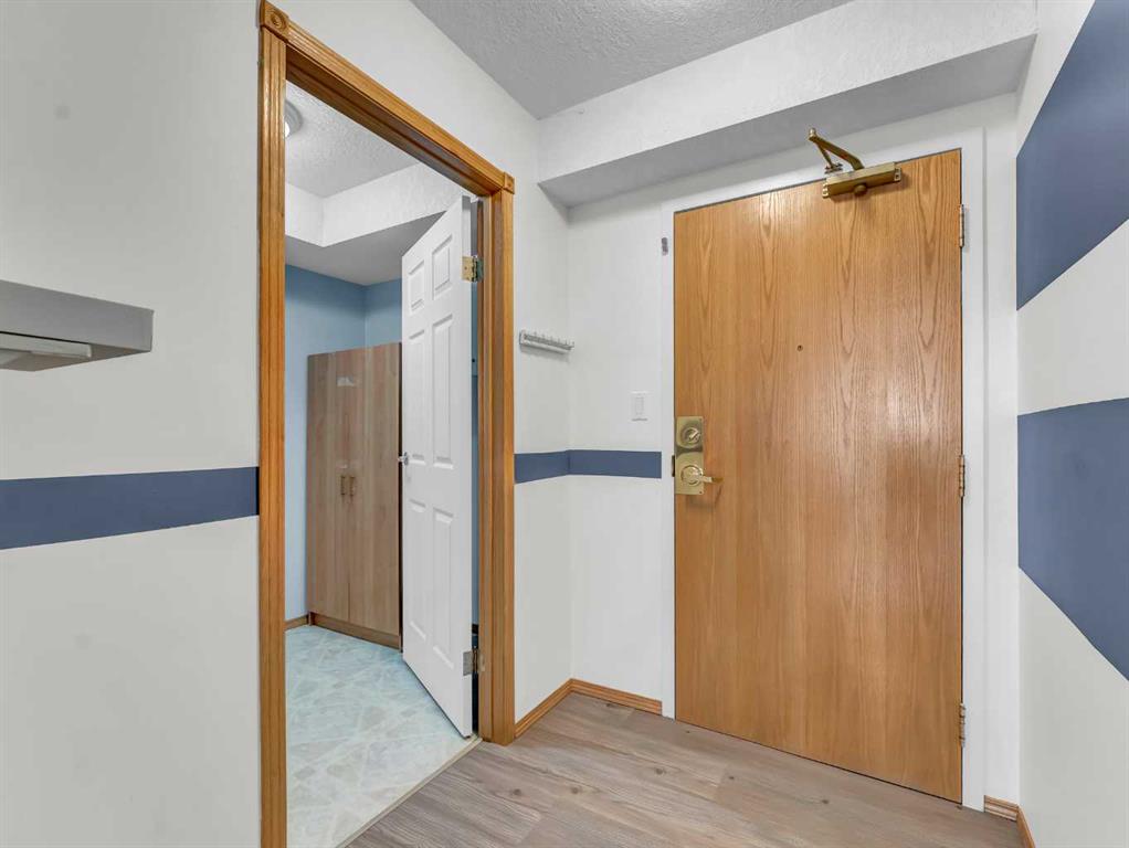 Recent upgrades include fresh paint, vinyl plank flooring, new carpet in the living room, blackout blinds throughout, and a new washer and dryer. Two air conditioning units ensure exceptional comfort all summer long. Located just steps from the elevator, with quick access to your underground parking stall and storage, everyday living couldn’t be more convenient.