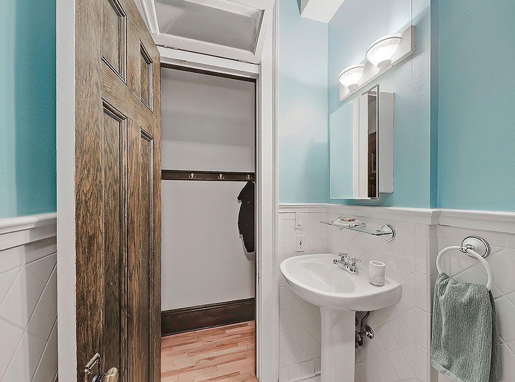 The bathroom preserves its vintage elegance with half-tiled walls and floors, an original claw-foot soaking tub, and updated faucet hardware and drain components. Constructed of concrete for exceptional quiet and durability, Anderson Estates offers weekday concierge service and a beautifully designed shared courtyard featuring seating areas, BBQ, fire table, and outdoor movie nights.