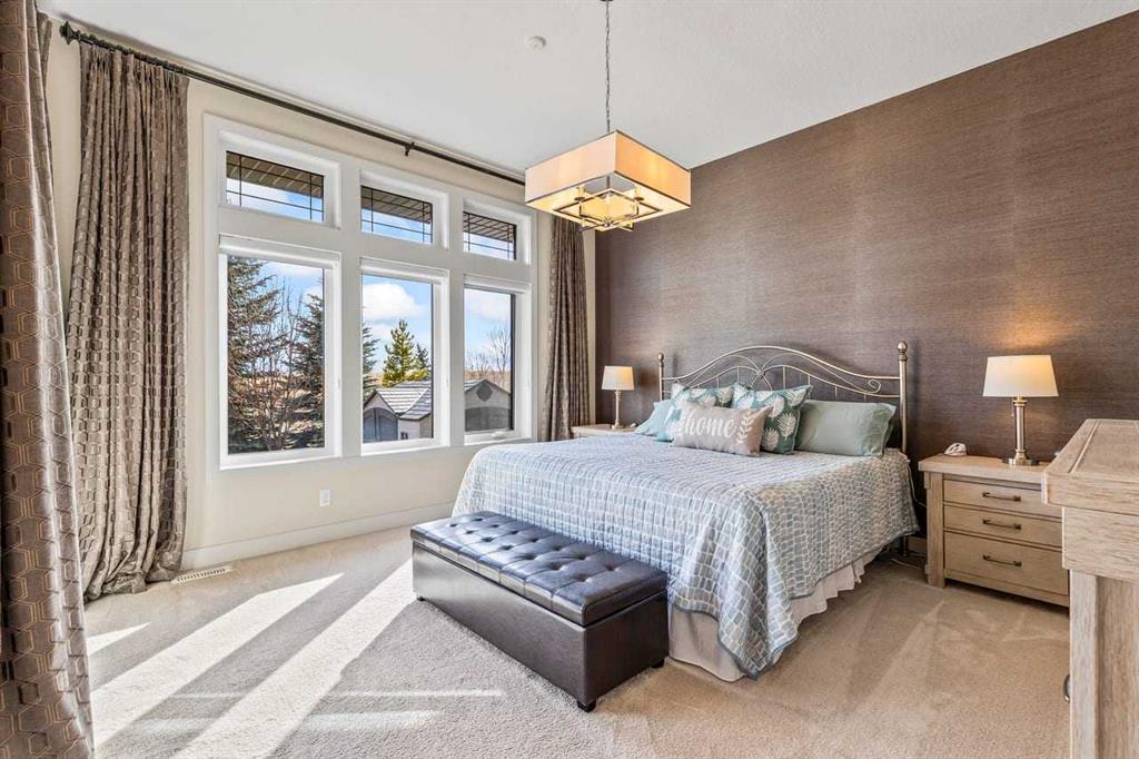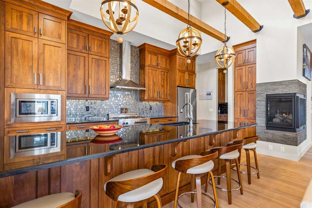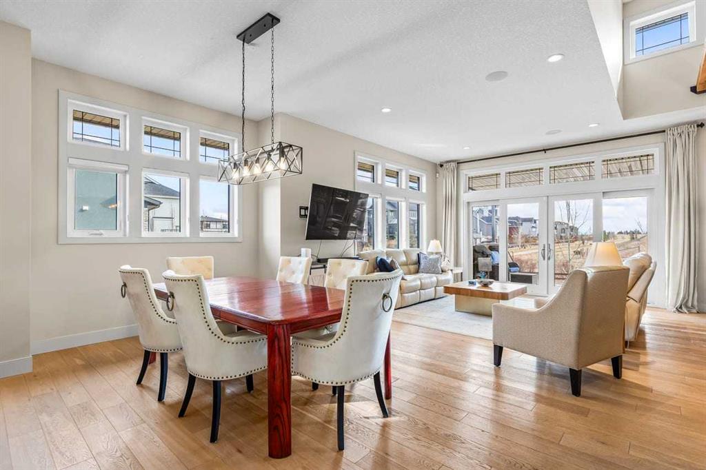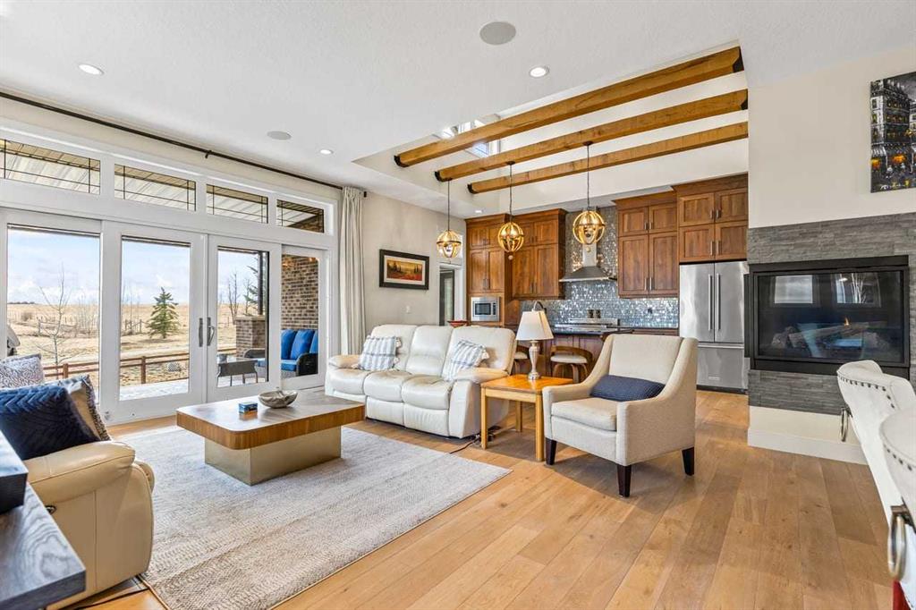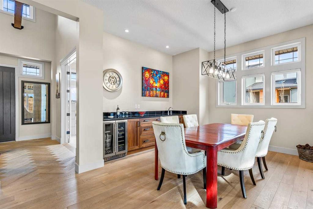 This stunning former showhome in the award-winning community of Harmony perfectly blends meticulous craftsmanship with an active and lakeside lifestyle. Spanning over 3,700’ of thoughtfully designed living space, the home impresses with vaulted ceilings, exposed beams, and premium upgrades throughout. The heart of the home is a chef-inspired kitchen featuring upgraded appliances, a butler’s pantry, and extensive cabinetry, flowing seamlessly into a bright dining area and a living room complete with a wet bar. The well-appointed main level is highlighted by a king-sized primary suite that fills with natural light. The spa-like ensuite offers a classic slipper tub, a large walk-in shower, and a walk-in closet. A bright home office, laundry room, and powder room complete this level. The high quality extends into the basement, which is designed for comfort and features two full-sized bedrooms, a large rec room, a wet bar, and a 4-pc bathroom with a double vanity and radiant heating throughout the lower level. Other features include triple-pane windows, herringbone-engineered hardwood detailing, central air conditioning, a Kinetico water softener/filter, a central vacuum, built-in speakers, high-quality window coverings, a storage shed, and $60,000 of additonal upgrades. Situated on a prime corner lot backing onto open field and pathways, the property offers unobstructed mountain views, a south-facing backyard, across from the park/greenspace, and one block away from Harmony South Beach. The outdoor space is fully realized with landscaping, irrigation, a custom deck cover, fencing, and Gemstone lighting. Even the heated triple garage is upgraded with durable polyaspartic flooring and a natural gas heater. Living in the award-winning community of Harmony, you’ll have access to two private lakes, beach access, community pathways, playgrounds, Mickelson National Golf Club, Adventure Park, and local amenities, plus the future Bingham Crossing.