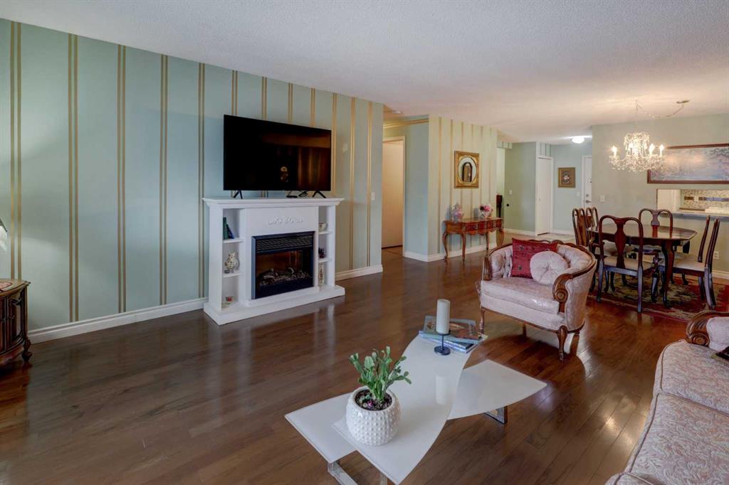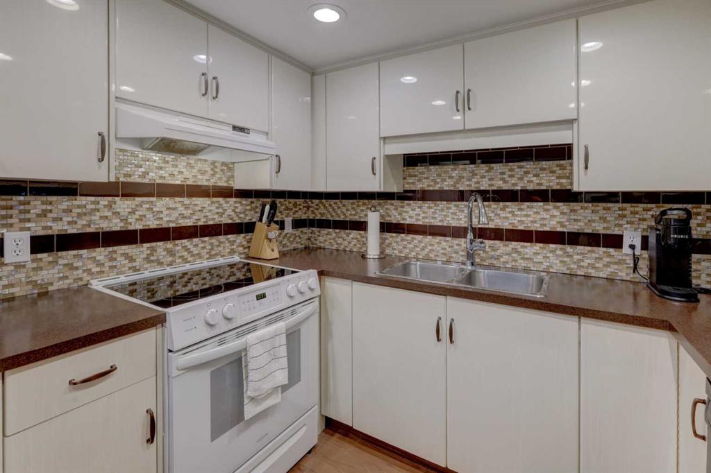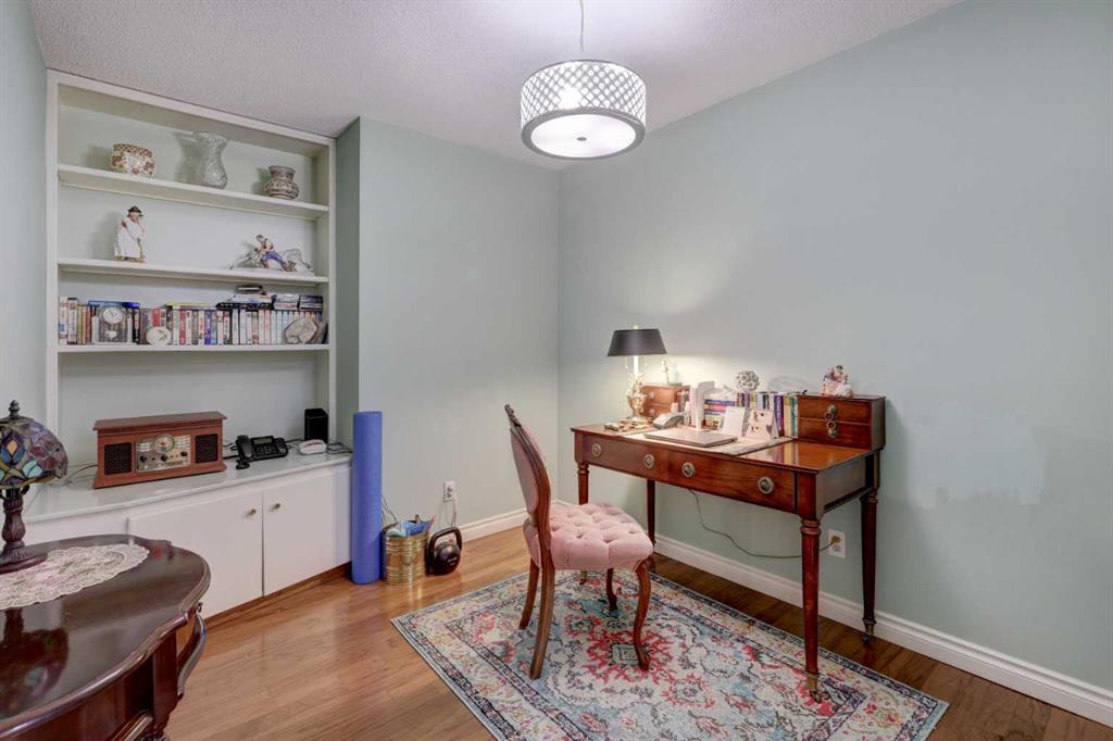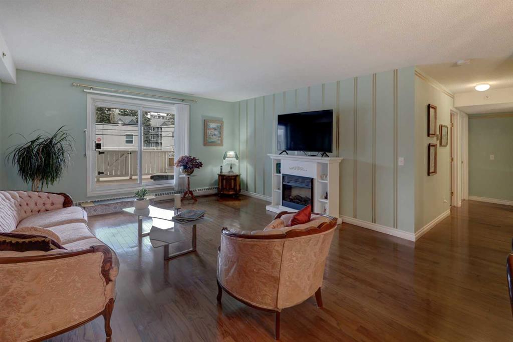 OPEN HOUSE - SATURDAY APRIL 11th - 1:00 TO 4:00 PM. Step into this wonderful home and you are immediately struck by its openness and flow. Enter through a gracious foyer, accessing the office/den and the large dining room/living room, and you are immediately impressed with the expansive open plan space. The dining room and living room are welcoming and accommodating to any style or arrangement. There is still room to escape or get some work done as well with the spacious den/office just off the foyer. The updated kitchen is very functional. It has plenty of room to create and move around … and the appliances are immaculate. It has a passthrough to the dining room as well, which is quite convenient. Down the hall you will find the bright and sunny primary suite, which is very large. In addition to the well-proportioned bedroom, it offers a walk-in closet and 4-piece ensuite. The second bedroom is generous as well with plenty of room for furniture and to move around. Across the hall, a pleasant 3-piece bathroom and very functional laundry room complete the floor plan. One of the most stunning features of this home is the massive, 37’ x 12’11”, south facing patio. At 45% covered, this patio is ideal for entertaining, perfecting your green thumb, putting the dog out or simply relaxing. It expands your living space tremendously. With over 1,327 square feet of living space, plus another 410 sf of partially covered patio space, you’ve got room to roam! Click on the 3D Tour icon above and you will see what we mean! Another special and unique feature of this offering is the 2 underground parking spaces included with the unit, one of which is titled for your ownership. The other is assigned. A handy, assigned, storage locker is only steps away from your car park. South Calgary is a fantastic, walkable, community to live in. With easy access to shopping and parks, Marda Loop and downtown, this location is hard to beat. Units in Leaton Place don’t come available very often and this south facing unit is one of the largest in the building. Now is your opportunity to own this gem in one of the most sought-after buildings in the area.