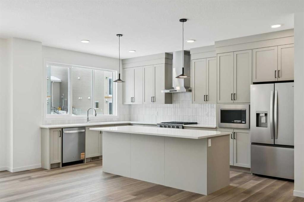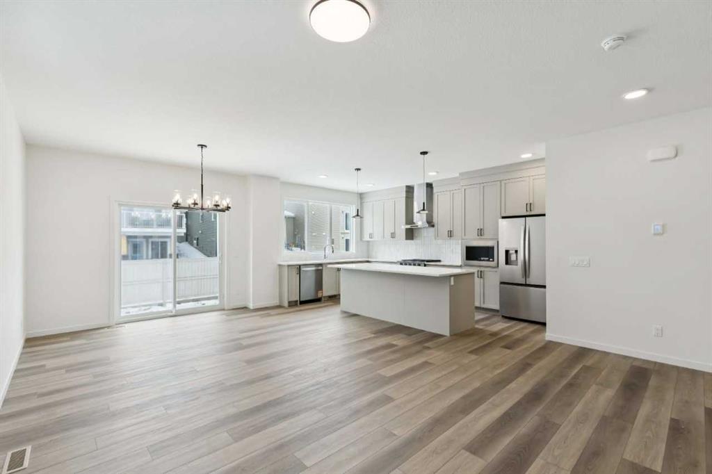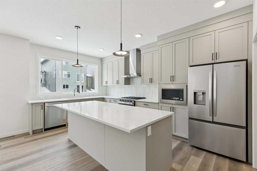 Welcome to the Connor by Calbridge Homes, located at 823 Bayview Terrace in the desirable community of Bayview. Offering 2,106 sq ft of thoughtfully designed living space, this home features 3 bedrooms and 2.5 bathrooms with a unique 3-level split layout, all above grade. The main living area showcases a bright open-concept design with a spacious kitchen featuring an oversized 8 foot island, walk-in pantry, upgraded appliance package, and modern finishes. Upstairs, enjoy a versatile bonus room and additional flex/den space, ideal for work or relaxation. The primary bedroom includes dual sinks in the ensuite, with the same convenience extended to the main bathroom. Additional highlights include railing throughout, an added front foyer window for natural light, washer and dryer, and a 21’ x 22’ double attached garage. Located close to parks, pathways, a future Rocky View County School, and recreation spaces, this home is available for immediate possession.