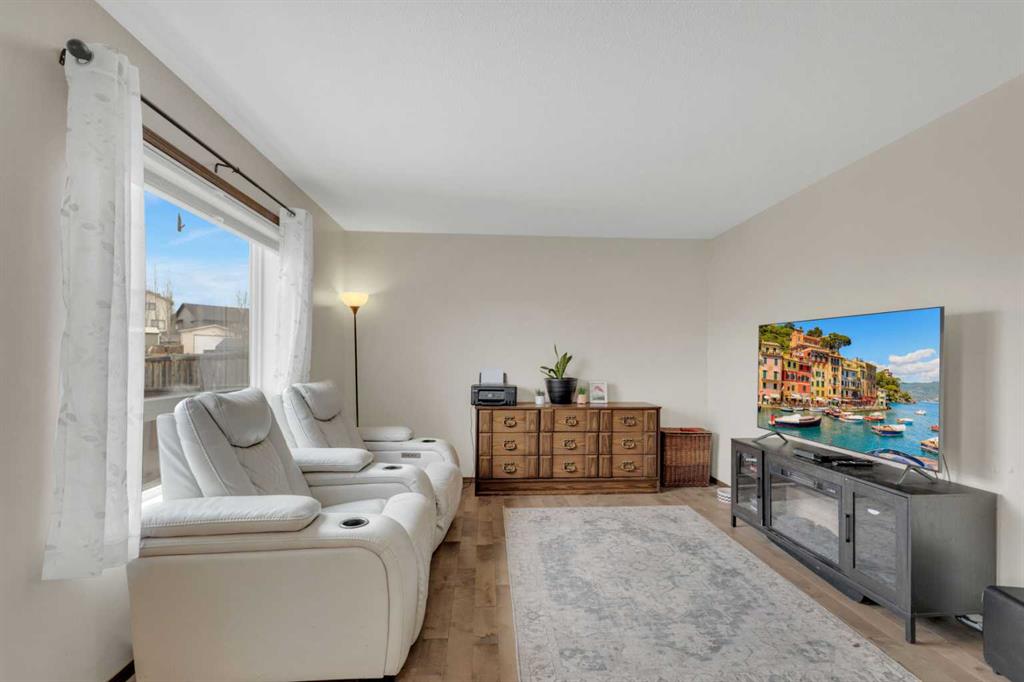 Well cared for fully developed 2-storey offering 3 bedrooms, a main floor office, and 4 bathrooms, set on a large fully fenced lot with an off-street parking pad. The covered front veranda welcomes you into a bright 2-storey entryway with large south-facing windows allowing plenty of natural light to pour in. French doors open to the main floor office, complete with a large front-facing picture window. The U-shaped kitchen features white cabinetry, plenty of counter space with a raised eating bar, full tile backsplash, and overlooks the dining and living areas. Garden doors lead from the dining space out to the oversized deck and backyard. A 2-piece bathroom is conveniently located on the main floor. An open staircase leads to the upper level with views of the foyer below. The primary bedroom offers space for a king-size setup, dual closets, and a 4-piece ensuite. Two additional bedrooms and a full 4-piece bathroom complete the upper level. The fully finished basement offers high ceilings, a spacious family room, 3-piece bathroom, laundry area, and additional storage space. The backyard is fully landscaped and fenced with back alley access, and sides onto a walking path. Located close to Don Campbell Elementary School, parks, playgrounds, and shopping.