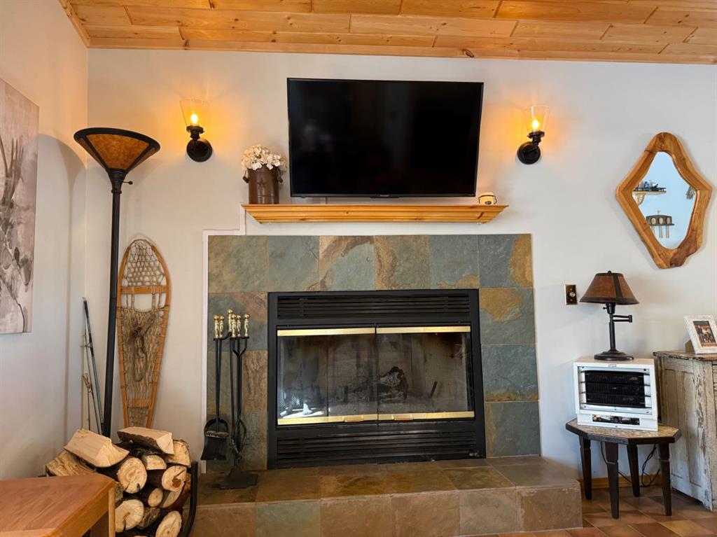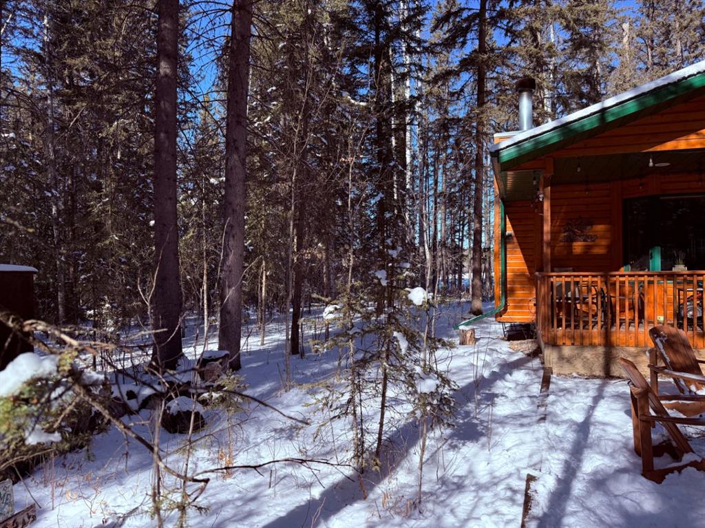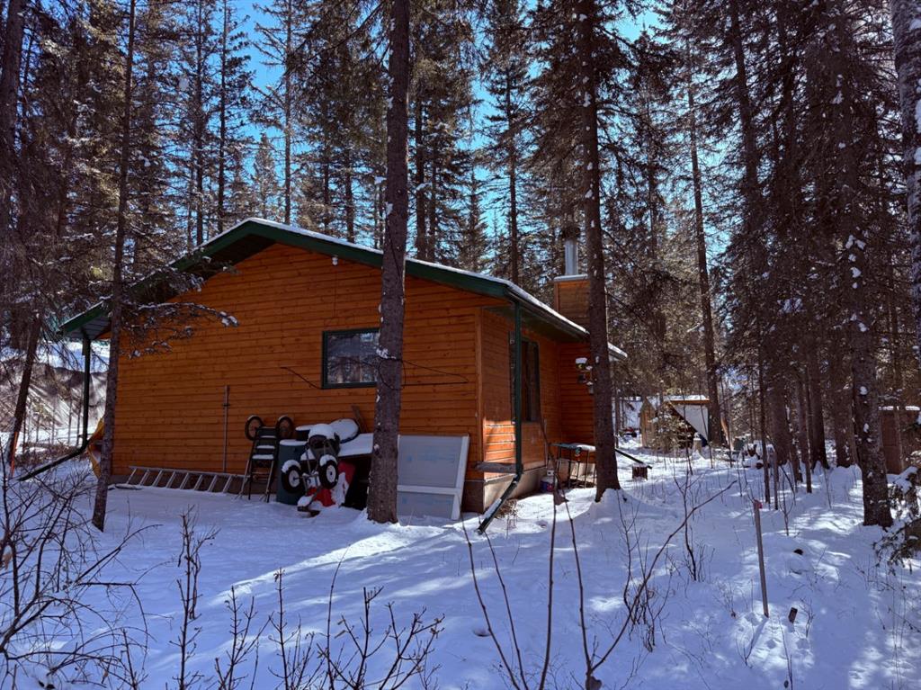 Rustic, cozy, year-round accessible cabin in the woods, approx. 1 hr from both Calgary and Red Deer!! Built in 1999, this cabin is 576 sq ft with 2 bedrooms, 1 bath, and open-concept kitchen/dining/living space. Wildlife is often seen walking by through the numerous, large windows. The south-facing bay window welcomes sunshine year-round. Cozy wood-burning fireplace. Covered deck with wheelchair ramp, 36” front door, interior doors 32-24”. 3 vehicle parking capacity with space for 1 RV (one RV allowed for storage and occasional guest usage). Starlink is a reliable option for internet (not included). Cell phone booster improves modest service (included). Golf carts, quads, side by sides etc are allowed on the roads with strict rules to reduce noise and dust. Condo fees include garbage disposal and snow removal on main road as well as park maintenance. Under regular weekend use, the 500 gallon septic tank has been emptied twice per year with the use of compostable toilet (traditional flush toilet can be re-installed in exchange if preferred). Outbuildings include wood shelter, and shed/outhouse combination. Potable water from park system is plumbed into cabin and available from May to October. A simple RV style water pump is used remainder of the year. Cistern tanks are allowed if a new owner wanted to install. Water is a available year-round at nearby park building. High back planters improve privacy with neighbours. Heated by electric heaters and fireplace (current power believed to be suitable for heat pump installation). Gas is available at the property line. Bergen Springs owners enjoy the pond with shelter for bonfires and skating in the winter. Kayak, or canoe and pedalboat in the summer. Or why not try out the disc-golf course, playground, community hall, and off-leash dog park. Grassy common areas are perfect for weddings, gatherings and other community events. The Social Club hold activities throughout the year including BBQs, skating, Tai Chi, darts, bocce ball, parades and fireworks. Bergen Springs is only a 10min drive to Sundre which has grocery stores, recreation centre, pool, walking trails, laundromats, boutique shops and coffee stops. Only an hour from both Calgary and Red Deer. This property boasts about great neighbours, and relaxing natural surroundings. Escape the pavement and traffic to this rejuvenating retreat community!