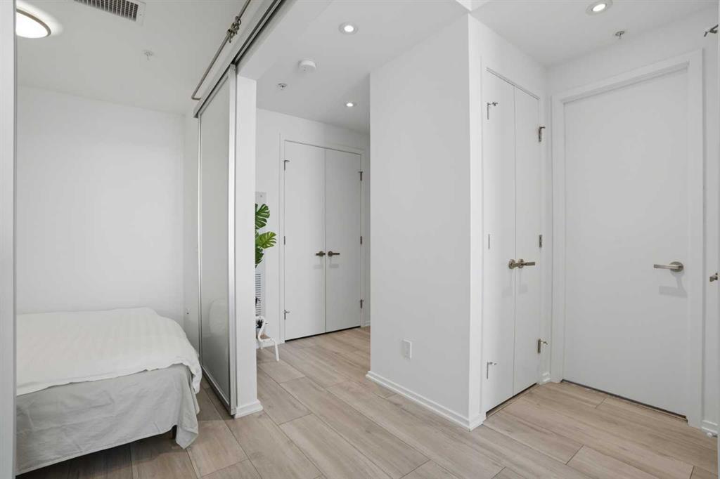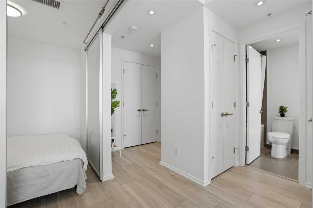 Storage is a rare highlight here, with four deep closets throughout the unit, offering more capacity than most similar condos and even competing with many two bedroom layouts. The attention to detail continues with a dedicated storage locker located in a clean, enclosed room on P3, providing a more secure and private alternative to typical parkade storage.
