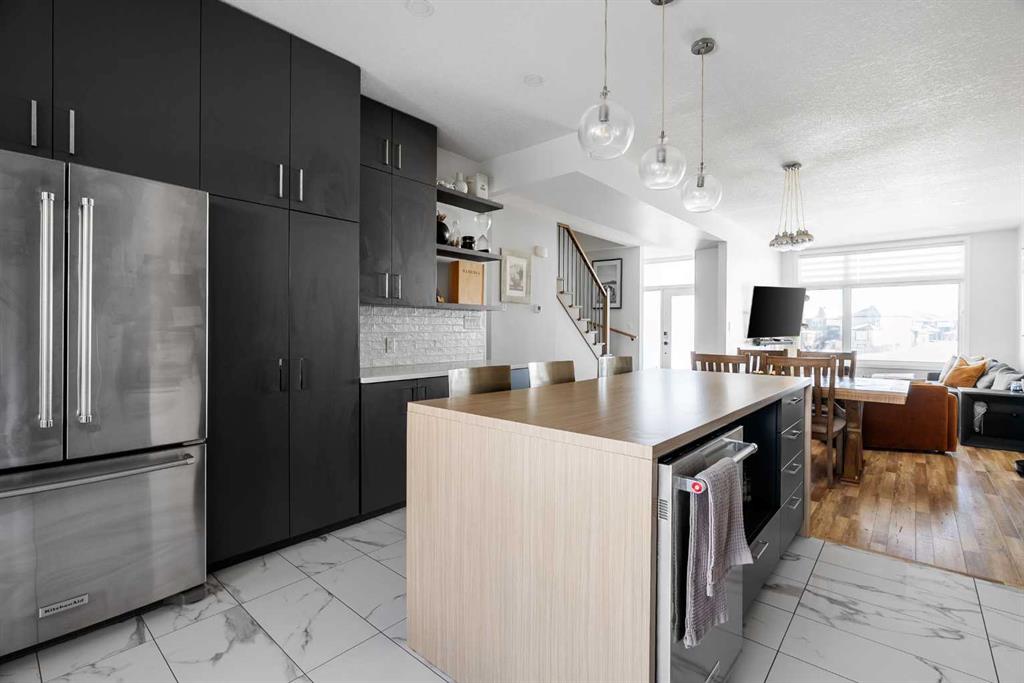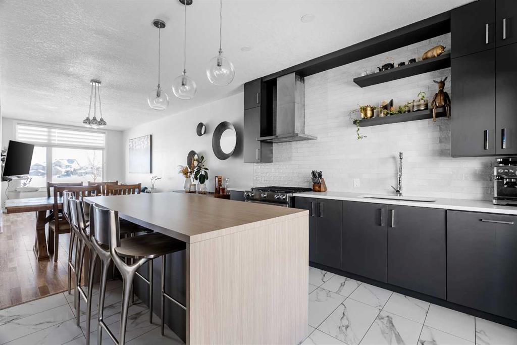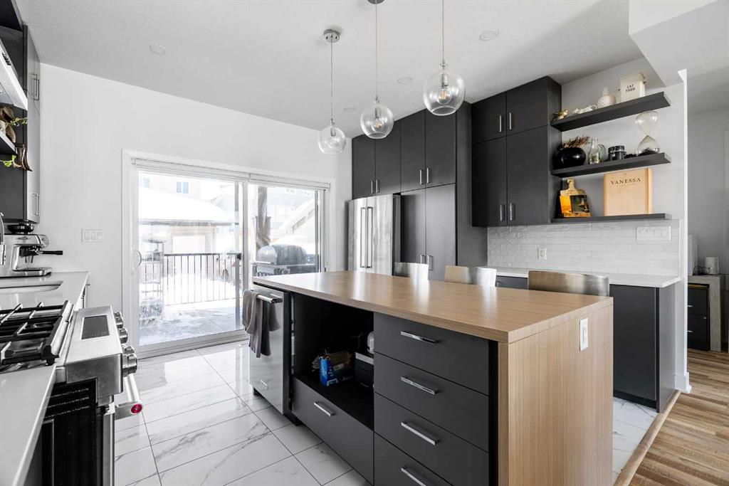 Timeless contemporary design with standout curb appeal—this is the home that turns heads and sets the standard. This property offers a striking first impression in a highly desirable location directly across from a pond and greenspace, and just steps to trails, parks, and all the amenities of Stoney Creek Plaza. Inside, you’ll find a no-carpet home with nearly 9-foot ceilings on the main level, creating a bright and elevated feel throughout. The designer kitchen is truly the heart of the home, showcasing ceiling-height cabinetry and backsplash, quartz countertops, a gas stove, an large island complemented by stunning pendant lighting. A built-in pantry adds both function and style, while patio doors lead to a covered back porch complete with a gas BBQ hookup—perfect for year-round enjoyment. The spacious dining area flows seamlessly into the living room, where the front window frames incredible pond views. The main level also features a dedicated office space with a built-in desk, along with a stylish, dark and moody powder room with a floating vanity. Upstairs, a wide staircase with solid wood treads leads to three generously sized bedrooms, including a beautiful primary suite with a walk-in closet and ensuite bathroom, again capturing serene views of the pond and greenspace. A second full bathroom and convenient upper-level laundry complete this floor. The fully self-contained basement features a one-bedroom legal suite with large windows that bring in plenty of natural light. Complete with its own kitchen, living room, separate laundry, spacious bedroom, full bathroom, and its own furnace, this suite is currently rented for $1,450/month—an excellent mortgage helper or investment opportunity. Parking is plentiful with a two-vehicle concrete driveway and a heated single garage. Additional features include tankless hot water and central air conditioning. This is a rare opportunity to own a thoughtfully designed home in a premium location with exceptional style.