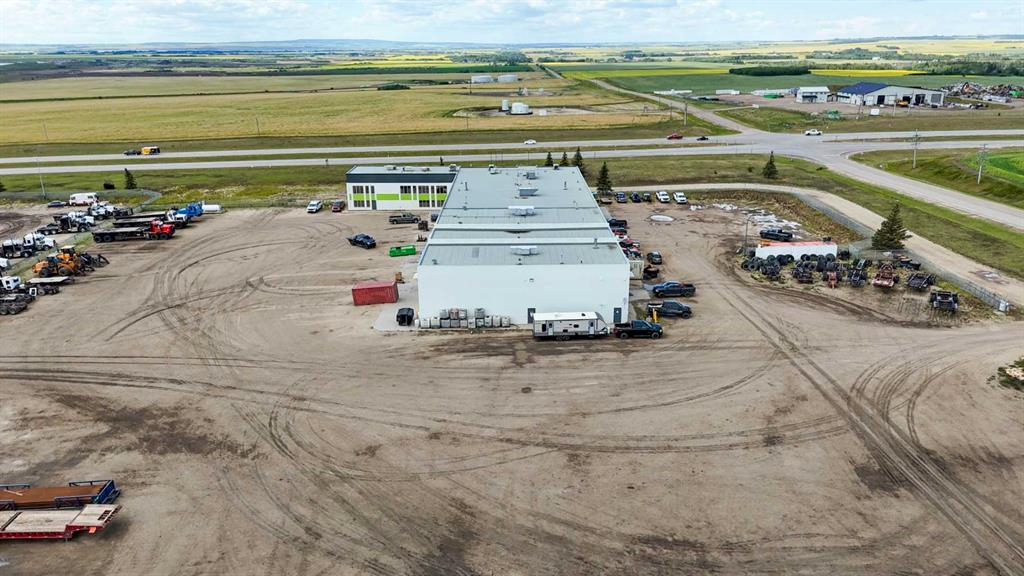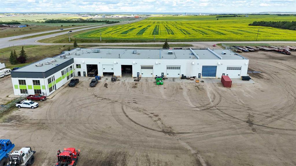 IMMEDIATE POSSESSION AVAILABLE! This impressive 32,386 SQ. FT. industrial building with a RECENTLY REFRESHED INTERIOR is situated on 20.14 ACRES with UNBEATABLE HIGHWAY VISIBILITY and just minutes from city limits. Designed for heavy equipment and ample storage, the site is fully fenced, landscaped, and features an expansive gravelled yard with excellent drainage. Built from durable block and mortar, this facility is designed to last and to support seamless onsite business operations. Services include a private well and septic system. The shop is equipped with 2 OVERHEAD CRANES—one 5-ton and one 10-ton—and (5) x 90 FT. DRIVE-THRU BAYS, including 2 WASH BAYS WITH BUILT-IN HOTSY SYSTEMS. 8.5 BAYS in total, including service bays with mezzanine storage. Radiant heat and an engineered air make-up system provide consistent comfort throughout, with multiple oversized overhead doors: (4) 18x20, (2) 18x18, (6) 18x16, and (1) 14x12. With plenty of room for admin, the two-storey workspace provides over 20 OFFICES, most of them executive-sized and offering stunning southwest views. Key areas include a welcoming front reception, parts rooms, locker room with shower, multiple washrooms, a staff lunchroom, and a spacious boardroom with dry bar. Natural light fills the common areas, and one office connects directly to the shop for optimal workflow. This property is as practical as it is impressive! With abundant parking, storage, excellent visibility and ease of highway access, it offers everything needed for an efficient, large-scale operation. RECENT UPDATES create a fresh, brighter workspace throughout. The shop and wash bay offer new lighting and floor-to-ceiling professional paint, along with new radiant heaters and fire-rated interior doors. Additional updates include fresh paint in the offices and mechanical/locker room, vinyl plank flooring in the lunchroom/stairwell, and planned lot regrading and regravelling this spring. Updated photos to come! BASIC RENT =$18/SQ. FT. + ADDITIONAL RENT=$3.94/SQ.FT. (TRIPLE NET LEASE) ALSO FOR SALE (See MLS A2295658) For more information or to arrange a private showing, contact your Commercial Realtor® today! Click on MULTIMEDIA for additional photos, video, and more!