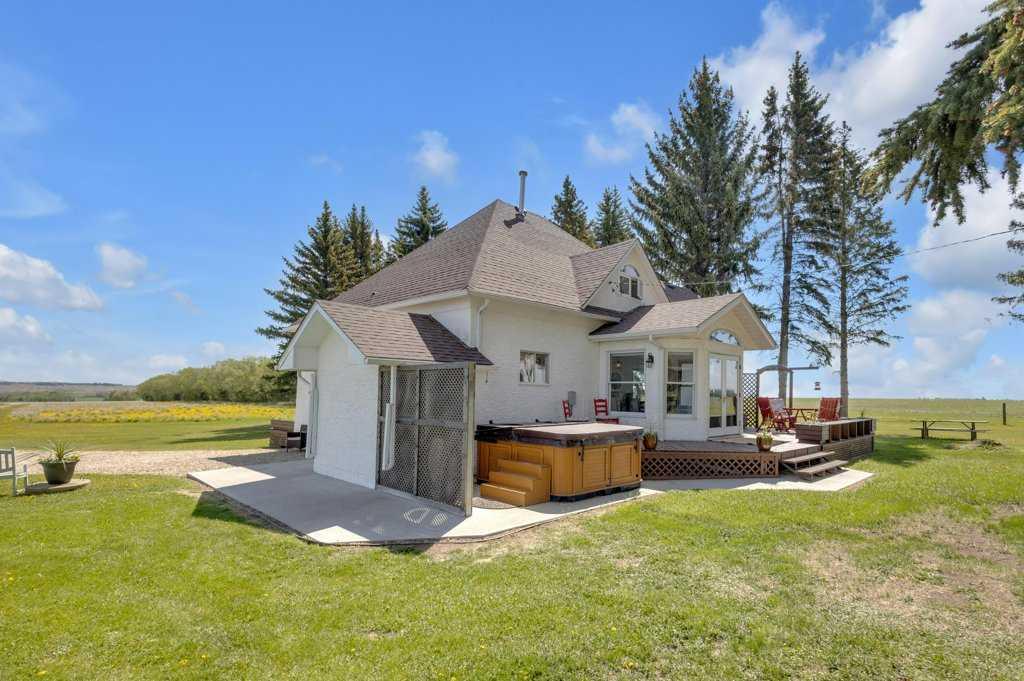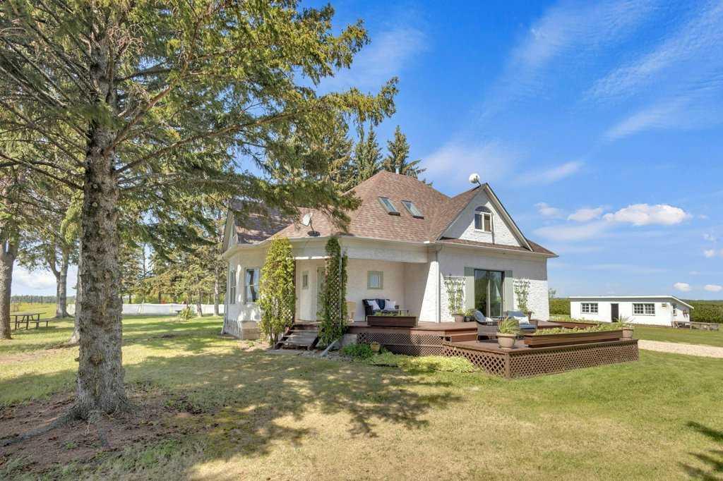 Welcome to a rare gem nestled just 2 minutes north of Rimbey — a beautifully preserved and thoughtfully updated 1909 farmhouse sitting on an expansive 19.56-acre property that effortlessly blends timeless charm with modern comfort. Step into a home where history meets contemporary living. This charming farmhouse features three spacious bedrooms upstairs and two and a half bathrooms, providing plenty of comfort and convenience for the whole family. The kitchen has been tastefully updated with stylish finishes and includes, stunning epoxy countertops, and brand-new appliances installed in 2024. Warmth and durability are ensured with the new flooring added in 2022, while in-floor heating in the basement keeps the home cozy during colder months. The home has been extensively updated throughout the years, with most recently a new hot water tank installed in April 2025, complemented by a second tank added in 2020. Throughout the home, you\'ll find abundant storage space, making it as practical as it is inviting. Outdoor enthusiasts and hobby farm lovers will find everything they need on this serene rural property. A large garden offers the perfect space to grow your own fresh produce, while a charming chicken coop provides daily farm-fresh eggs. The original hip roof barn stands as a proud and rare feature, full of character and still structurally sound. Adding to its uniqueness, the barn loft has been transformed into a private pickleball court—ideal for year-round fitness and fun. Nature lovers will appreciate the personal orchard filled with fruit-bearing trees and the romantic “Lovers Lane,” a peaceful, tree-lined path that invites evening strolls toward breathtaking sunsets. After a day well spent, unwind in your private hot tub under a canopy of stars—the perfect way to relax and enjoy the tranquility of this exceptional property.Whether you\'re looking for a peaceful family homestead, a hobby farm, or a one-of-a-kind rural retreat, this property delivers charm, functionality, and unforgettable moments. This is more than a home — it’s a lifestyle. Located just minutes from Rimbey — the convenience of town, with the tranquility of country living. Come and step into a storybook setting ready for your next chapter.