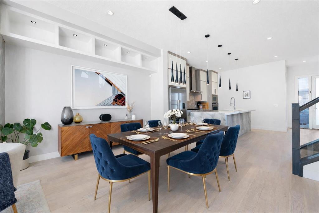 ** OPEN HOUSE THIS SAT FROM 1 TO 4 PM. ** Welcome to this beautifully designed semi-detached infill located in the highly sought-after community of Crescent Heights. Offering over three levels of thoughtfully crafted living space, this 4-bedroom, 3.5-bathroom home blends modern design with everyday functionality—all just minutes from downtown Calgary. The main floor showcases impressive 10-foot ceilings and a bright, open-concept layout, complete with a dedicated office—perfect for working from home. The chef-inspired kitchen is a true focal point, featuring stunning waterfall quartz countertops, quartz dining area, quartz back splash and ample space for both entertaining and daily living. Upstairs, you’ll find 9-foot ceilings with 3 spacious bedrooms including a well-appointed primary retreat, while the fully developed basement adds even more versatility with a professionally installed projector system, wet bar, 9-foot ceilings and an additional bedroom—ideal for guests or extended family. Enjoy summer days on the sunny south-facing deck and take advantage of year-round comfort with central air conditioning. The double detached garage provides secure parking and additional storage. Perfectly positioned close to schools and post-secondary institutions, this home also offers quick access to Edmonton Trail and Centre Street North. Enjoy being just 5 minutes to downtown and only minutes from some of Calgary’s most iconic destinations, including the Calgary Zoo, Telus Spark Science Centre, Rotary Park, and Prince’s Island Park—offering the perfect balance of urban convenience and outdoor lifestyle.