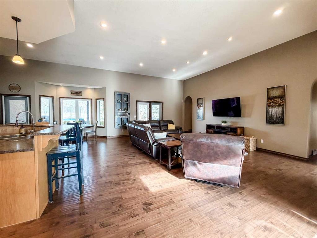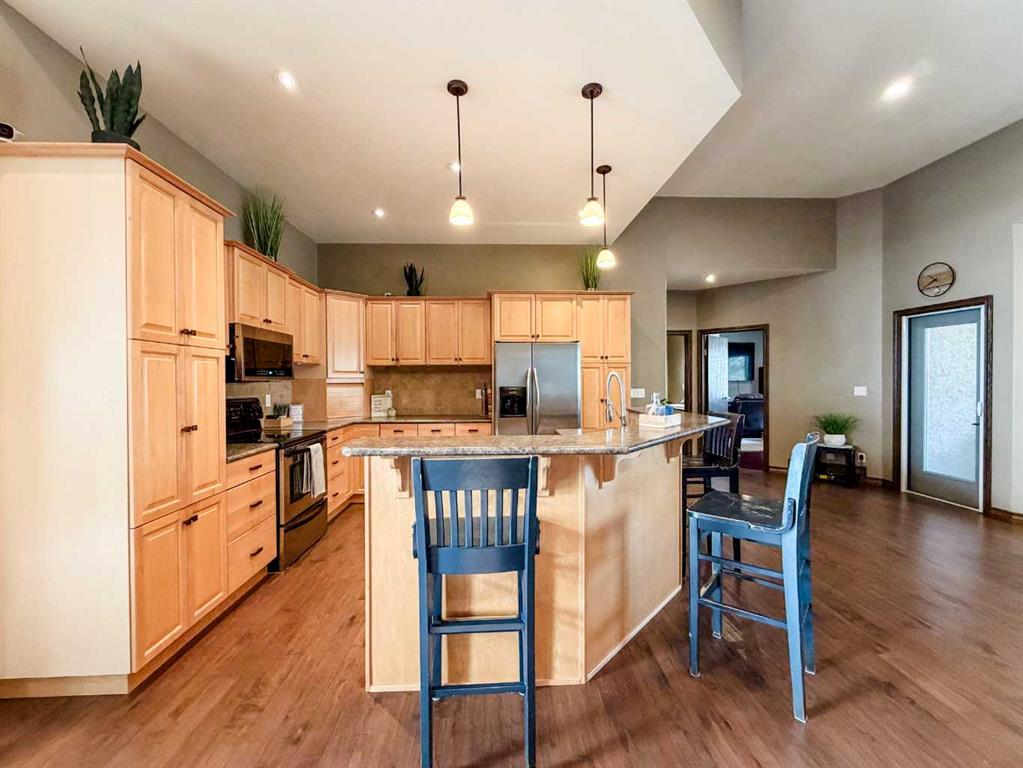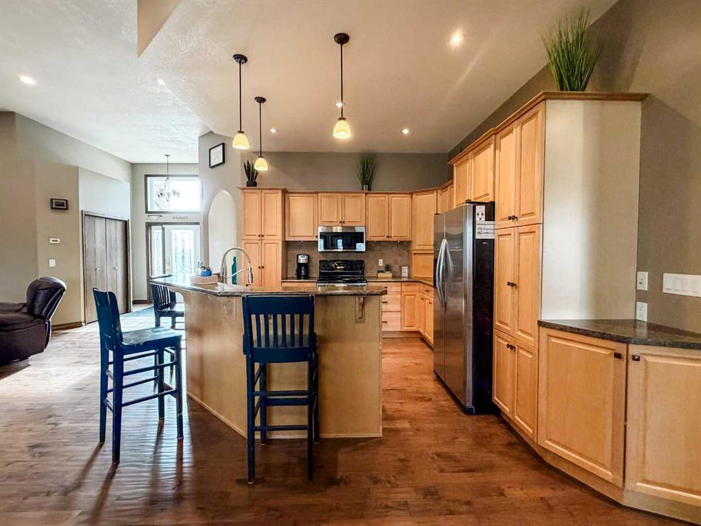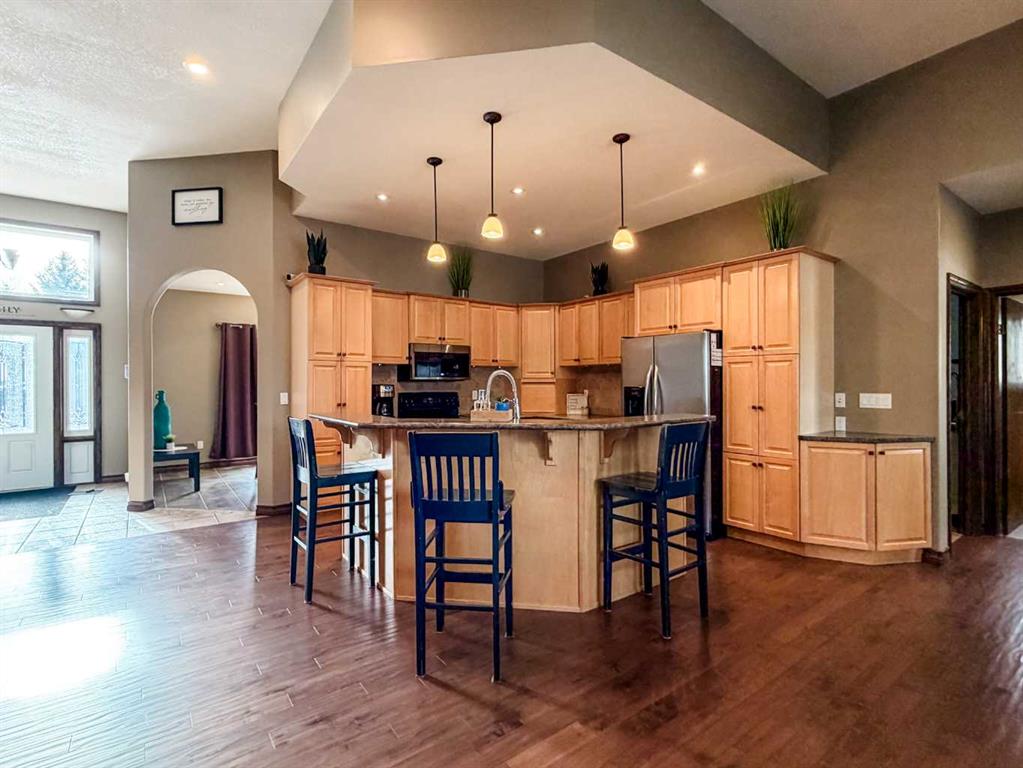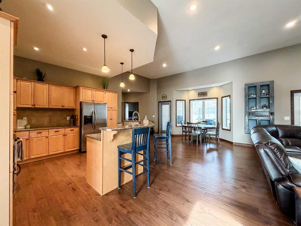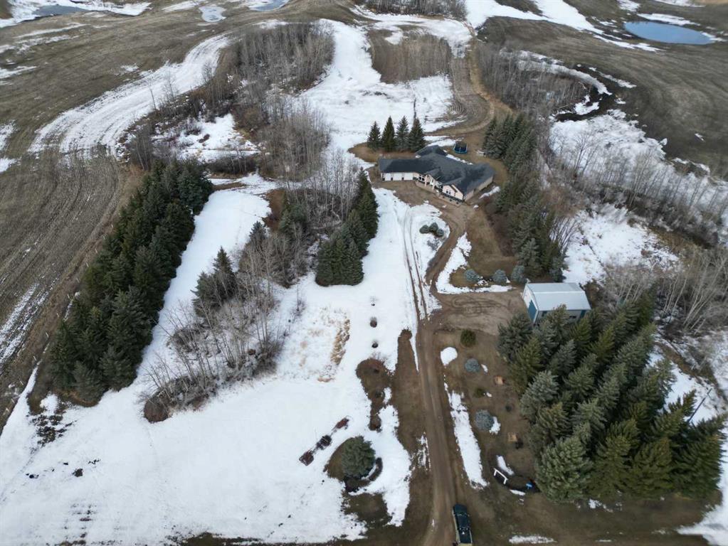This single-story layout ensures easy accessibility and flow, making it perfect for those seeking a low-maintenance lifestyle without compromising on space or style. Located in the desirable Stettler County on 3.97 acres, this property offers the perfect balance of rural tranquility and modern convenience. The 34X25 attached garage gives ample room for indoor parking. If that wasn\'t enough, the cold storage shop 28X40 allows lots of room for toys and acreage equipment! Enjoy the summer nights with a private fire pit and seating area.