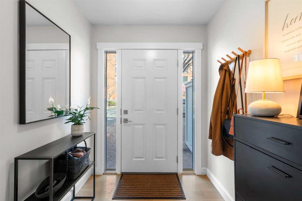 PRICED TO SELL DUE TO WORK RELOCATION ** Welcome to this beautifully updated end-unit townhome in the highly sought-after BELTLINE community of Calgary, where urban living meets comfort and convenience. As you arrive, the main entrance level welcomes you with everyday convenience, offering direct access to the single car garage, a dedicated laundry area, and rear access to your back yard and stunning private courtyard making it perfect for enjoying peaceful moments outdoors or hosting friends on warm summer evenings. Heading up to the main living level, the home truly begins to shine. The updated kitchen features elegant quartz countertops (2025) and stainless steel appliances, creating a space that is both functional and beautiful. Just off of the kitchen is a balcony which is perfect to sit and have a morning coffee while listening to the sound of the birds chirping. The living room area invites you to unwind, highlighted by a beautiful gas fireplace that sets the perfect ambiance for cozy nights in. This level is completed with a convenient two piece bathroom. On the upper level, you’ll find two well appointed bedrooms and a full main bathroom. The primary bedroom is stunning, featuring soaring vaulted ceilings that create an airy, open feel, along with its own Juliet balcony—perfect for letting in fresh air and natural light to start or end your day. This home has been thoughtfully updated throughout, including a retiled primary bathroom and new flooring on both the main and upper levels in 2022, new front and rear exterior doors in 2023, along with a new high efficiency furnace installed in 2025 and high efficiency hot water tank added in February 2026. The location of this home is perfect as you’re just minutes from Kensington Market, the iconic Calgary Stampede grounds, scenic walking paths along the Bow River, the C train station, and the vibrant energy of 17th Avenue SW which is home to some of the city’s best dining, cafes, and entertainment. Whether you\'re starting out, downsizing, or investing, this home offers a lifestyle that blends modern updates with an unbeatable inner city location. These places do not come up frequently so book your private showing today!