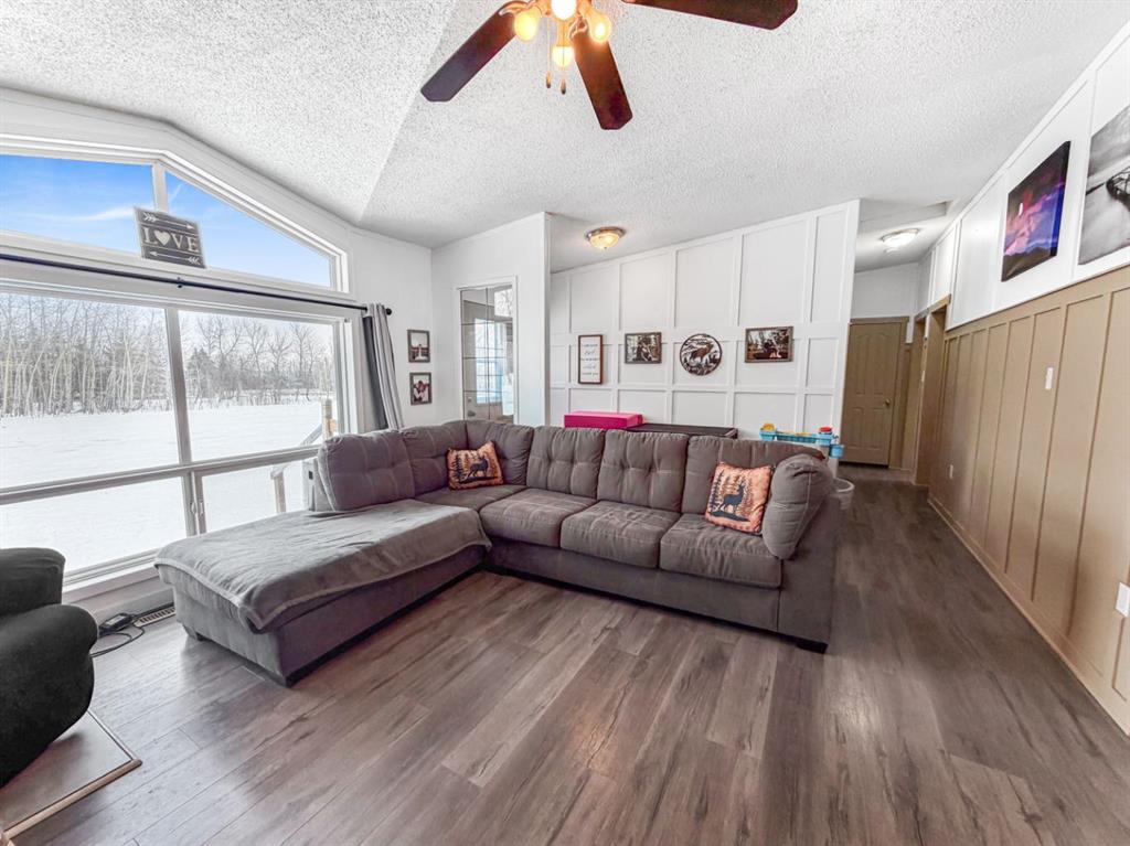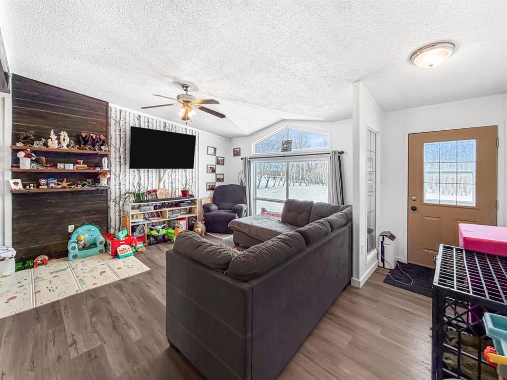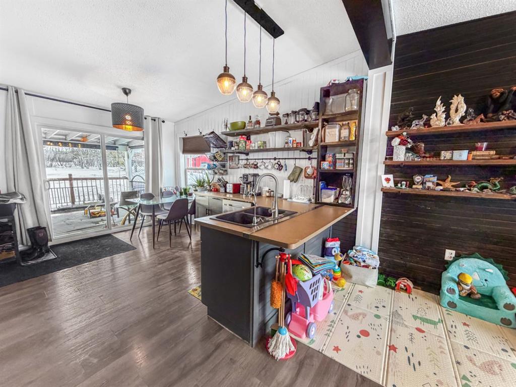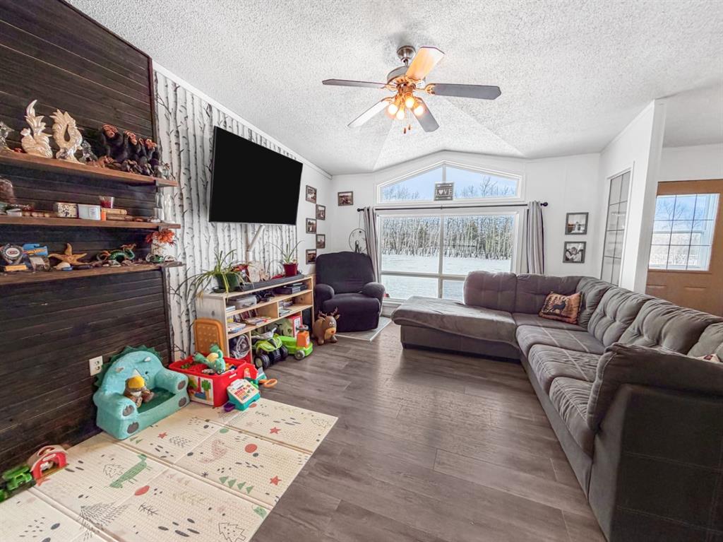 If you’re looking to escape the city for some peaceful seclusion, this charming home on 4.13 acres in Mountain Side Estates is the perfect retreat. Located just 20 minutes west of Grande Prairie with pavement right to your door, the property offers a functional floor plan highlighted by a trendy kitchen and dining area that overlooks a spacious, light-filled living room. The layout includes three bedrooms and features a primary suite with a large walk-in closet and ensuite along with a main bathroom and dedicated laundry room. Outside, the gorgeous yard provides complete privacy among mature trees, complemented by a south-facing covered deck, a dog run, and versatile outbuildings including a barn-style shed with a chicken coop and a 16 x 18 workshop wired with 220V power.