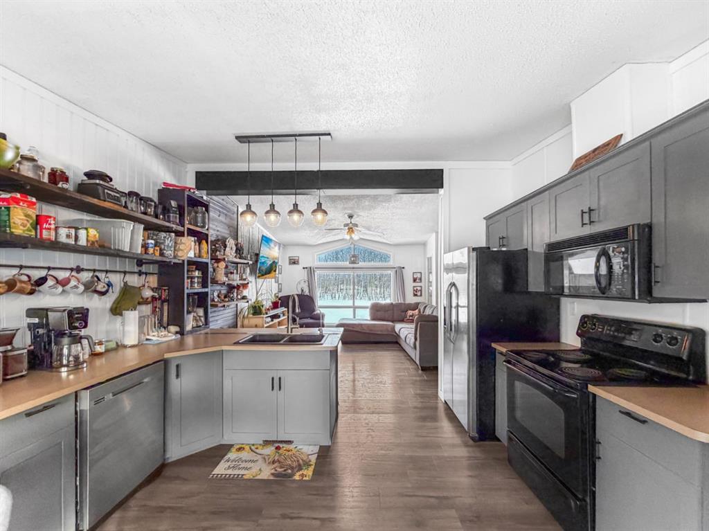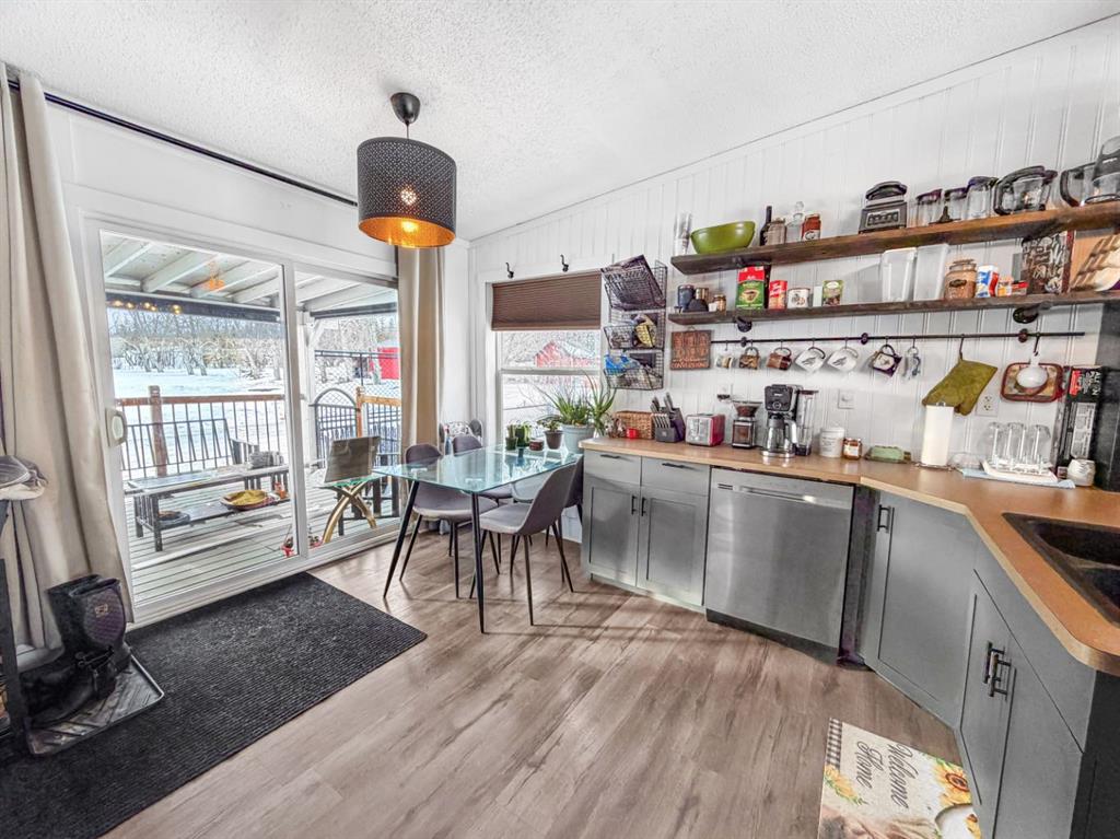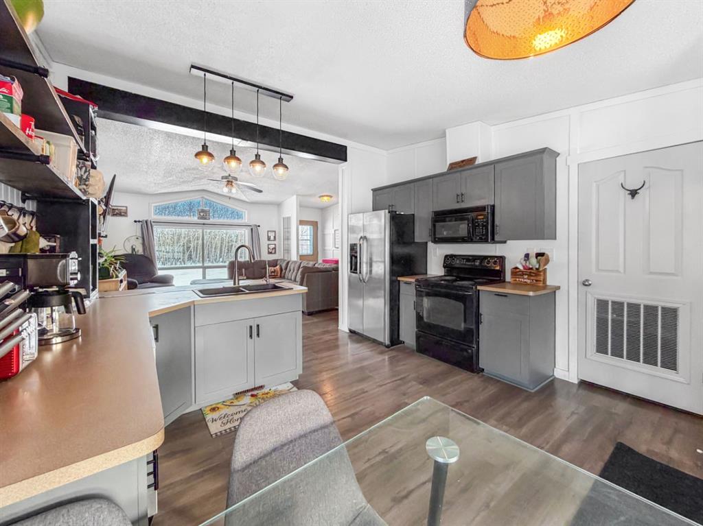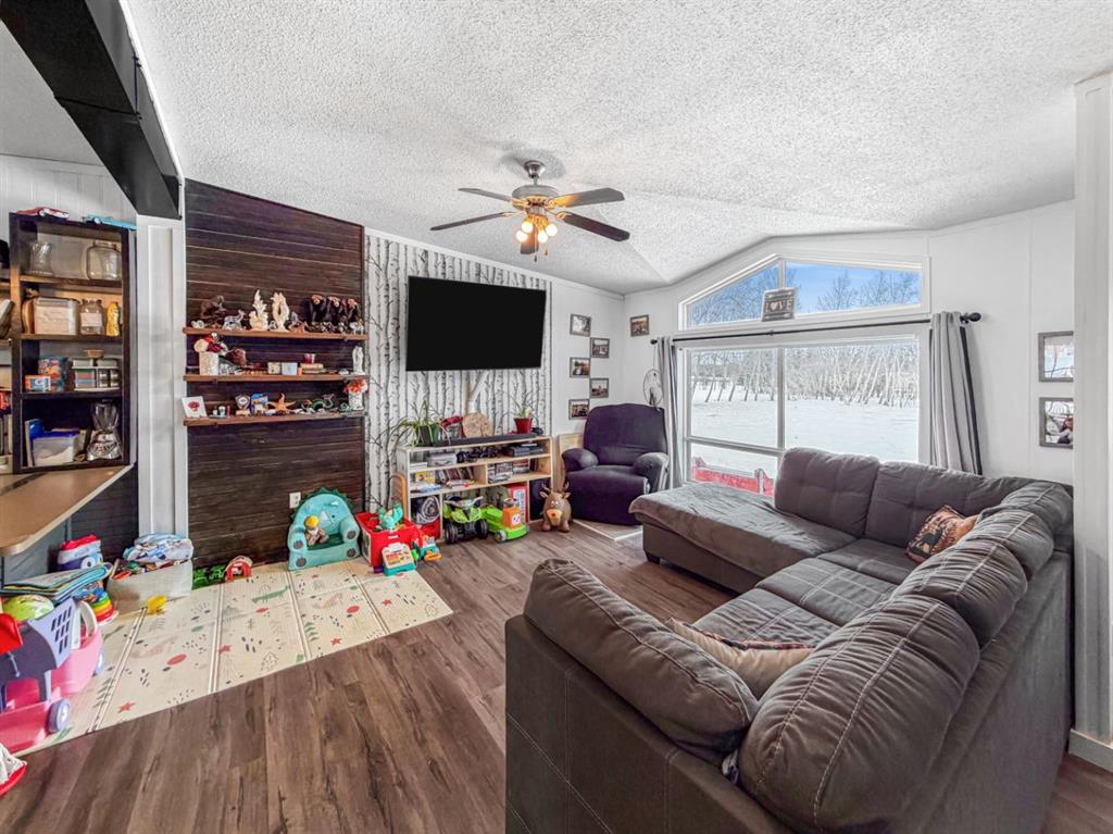 If you’re looking to escape the city for some peaceful seclusion, this charming home on 4.13 acres in Mountain Side Estates is the perfect retreat. Located just 20 minutes west of Grande Prairie with pavement right to your door, the property offers a functional floor plan highlighted by a trendy kitchen and dining area that overlooks a spacious, light-filled living room. The layout includes three bedrooms and features a primary suite with a large walk-in closet and ensuite along with a main bathroom and dedicated laundry room. Outside, the gorgeous yard provides complete privacy among mature trees, complemented by a south-facing covered deck, a dog run, and versatile outbuildings including a barn-style shed with a chicken coop and a 16 x 18 workshop wired with 220V power.