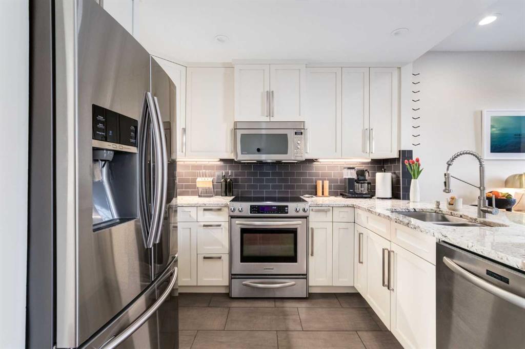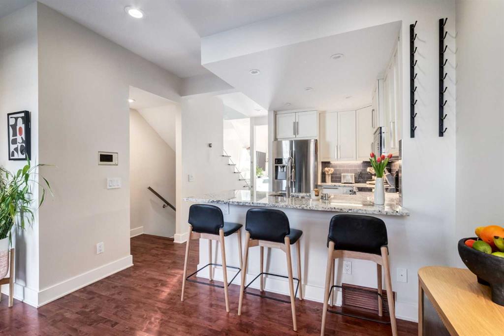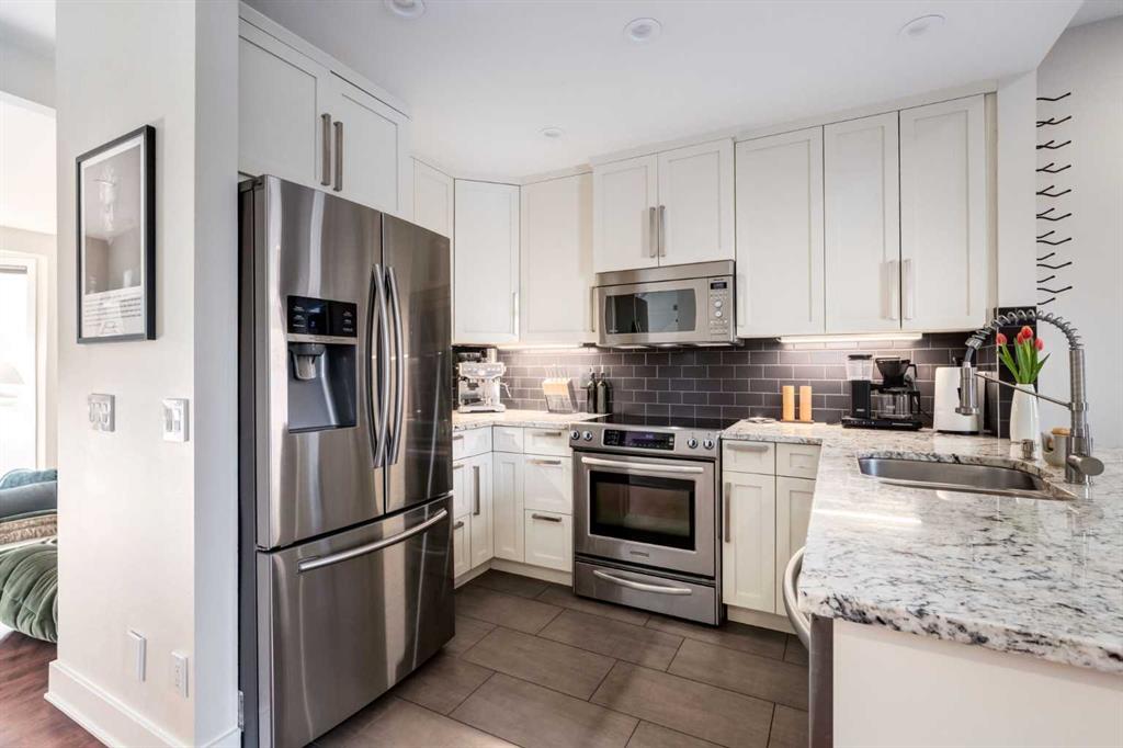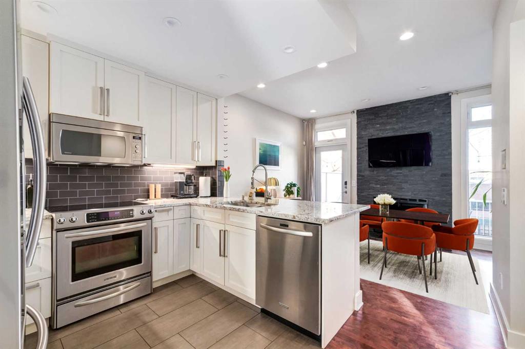 Rarely does a home so seamlessly blend sleek modern luxury with a warm, sun-drenched atmosphere—welcome to 1419 10 Street SW, a refined inner-city sanctuary in the heart of Calgary’s vibrant Beltline. From the moment you ascend from the foyer, you are greeted by an expansive, light-filled open-concept main floor designed for contemporary urban living. Soaring 9-foot ceilings and rich hardwood flooring create a sense of scale and sophistication throughout. The chef-inspired kitchen anchors the space, featuring premium granite countertops, stainless steel appliances, and thoughtful functionality, flowing effortlessly into an elegant dining area. Bathed in natural light, the dining space is perfect for both everyday living and entertaining, centered around a rare and charming wood-burning fireplace that adds warmth and character. The spacious living room completes the main level, offering a comfortable yet refined setting with custom built-in TV cabinetry and integrated shelving—ideal for relaxing or hosting guests. Upstairs, the same refined finishes continue into a thoughtfully designed layout prioritizing comfort and privacy. The primary retreat is exceptionally well-appointed, showcasing an expansive wall of custom built-in cabinetry and a luxurious 4-piece ensuite featuring a steam shower (updated in 2023), double vanity, and bidet for a spa-like experience. The second bedroom is impressively sized with room for a dedicated home office area—perfect for today’s flexible lifestyle. A second 4-piece bathroom with a jetted tub and quality finishes serves this level, while centrally located stacked laundry adds everyday convenience. Step outside to your private, newly re-stained deck—an inviting outdoor retreat complete with a natural gas line, ideal for effortless summer entertaining. A standout feature of this property is the oversized, fully heated single-car garage. Currently utilized as a professional home office, this versatile space is equipped with a high-end hydronic heating system and a brand-new door, offering endless flexibility—whether as a workspace, studio, or secure parking. This home has been meticulously maintained and enhanced for year-round comfort, including triple-pane windows, premium Hunter Douglas window coverings, and numerous system updates, along with a newer roof for added peace of mind. Located in the heart of the Beltline, this home places you within walking distance of Calgary’s best amenities. From the boutiques, restaurants, and patios of 17th Avenue to nearby green spaces, the lifestyle here is truly unmatched. Enjoy the convenience of a walkable, car-optional lifestyle without compromising on luxury, space, or design.