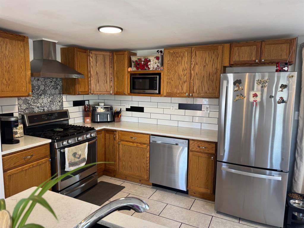 Step inside to discover a bright, open-concept main floor featuring a spacious living room, dining area, and a stylish kitchen designed for both function and entertaining. The kitchen is a true highlight, complete with quartz countertops, stainless steel appliances—including a newer fridge (September 2022), gas stove with hood fan, dishwasher, and microwave—along with under-cabinet lighting and soft-close drawers that add a touch of everyday luxury. Just off the kitchen, a convenient butler’s pantry with chest freezer provides additional storage and prep space.