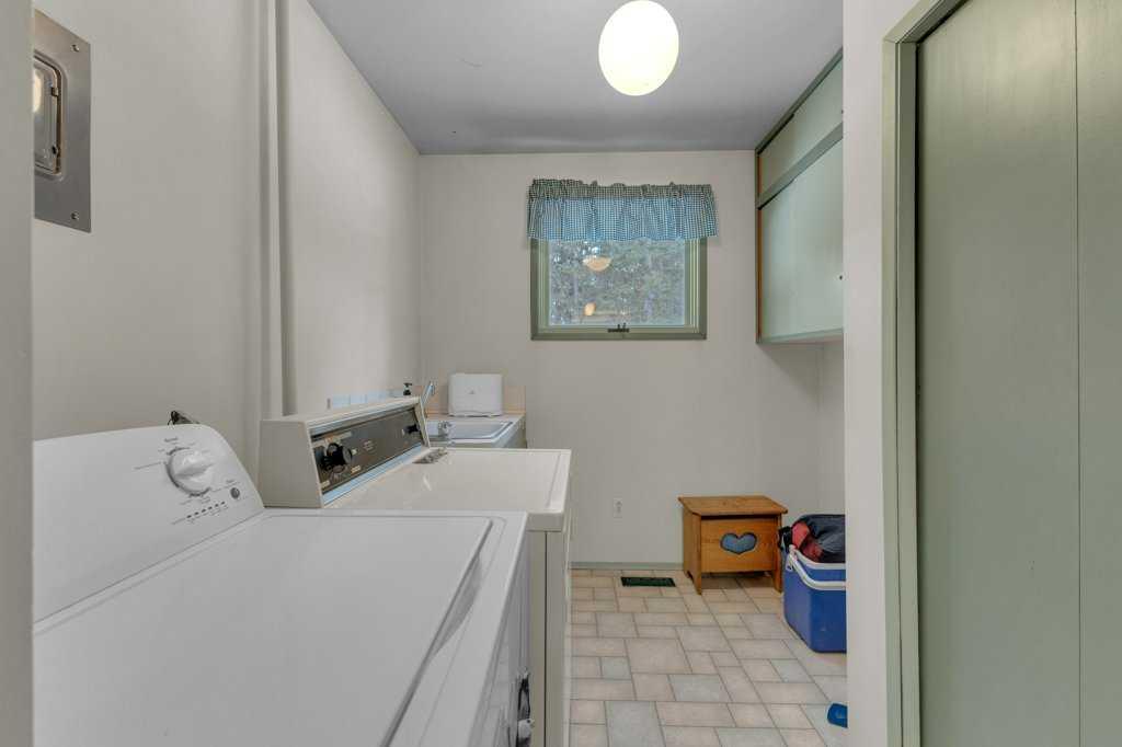 Discover the ideal combination of privacy, generous space, and everyday convenience with this 35-acre property, located just minutes from town. From the moment you arrive, this 1,377 sq. ft. bungalow and oversized garage set a warm, welcoming tone. Step inside to a bright kitchen featuring a center island, the perfect hub for family meals and entertaining. Just off the entry, you’ll find convenient main floor laundry complete with a new washer and dryer (2024). The open dining area easily accommodates a full-sized dining suite, while the spacious living room is bathed in natural light from two large bay windows. A cozy corner wood-burning stove with a classic brick surround creates the perfect gathering spot for relaxation and connection. Down the hall, a versatile bonus room currently used as a quiet reading nook could seamlessly become a home office, hobby room, or additional bedroom. A full 4-piece bathroom and a comfortable primary bedroom complete the main floor. The fully finished lower level expands your living space with an additional bedroom, two generous recreation rooms, a convenient 3-piece bathroom, and a dedicated furnace/utility room. Extensively renovated in 1991, the home blends timeless charm with lasting quality and modern functionality. The basement features a professionally installed weeping tile system and super sump pump, ensuring a dry and secure space. Outside, a large wraparound deck overlooks the private, park-like yard, framed by mature trees that offer both beauty and natural wind protection. The property is fully perimeter-fenced and cross-fenced—perfect for livestock or horses. Supporting features include a spacious 40\' x 60\' insulated quonset with an 18\' x 12\' overhead door, with all shelving and workbenches included. Additional improvements include well-maintained corrals, a chicken coop, garden shed, and a reliable stock waterer. Whether you’re seeking a serene rural retreat or the ultimate acreage to embrace country living, this exceptional property truly has it all.