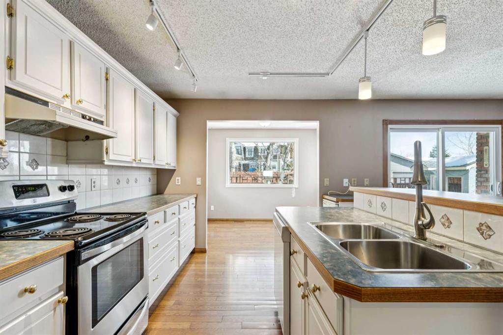 This large 1562 sq.ft bunalow is ideally situated in the sought after community of Upper North Haven. The main floor features an expectionally large living /dining room combo, refurbished kitchen, sunny breakfast nook, family room with brick fireplace, 3 bedrooms, a primary bedroom with 3 pce ensuite, and hardwood floors The basement is fully developed and features a recreation room, sauna, workshop area, office and 3 piece bathroom. Plenty of room to build a garage in the backyard. Close to parks, schools, pathways and shopping. This special property is ideal for the growing family. Vacant and ready for Immediate Occupancy. Serveral of the pictures have been Virtually Staged.