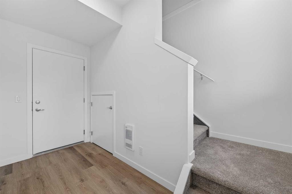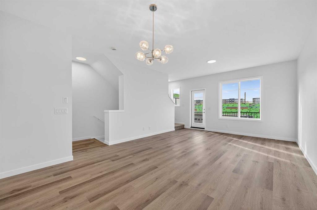 OPEN HOUSE on Saturday and Sunday from 12-5pm. Please go to the show home located at 101, 28 Red Embers Plaza NE for access. StreetSide proudly presents this exceptionally popular interior-unit townhome, where expansive living areas meet modern comforts and sophisticated finishes. The thoughtfully designed floorplan features three spacious upper-level bedrooms and two and a half well appointed bathrooms, complemented by a versatile lower-level den perfect for a home office or quiet retreat. The heart of the home is an inviting open-concept main floor, anchored by a large gourmet kitchen featuring a functional breakfast bar for casual dining. This bright living space transitions seamlessly to a private balcony, offering a perfect setting for outdoor relaxation. The interior showcases high end craftsmanship, including modern white slab-style cabinetry with a full bank of drawers for maximum storage. The kitchen is further elevated by polished white quartz countertops and a full suite of premium stainless steel appliances. Durable luxury vinyl flooring runs throughout the primary living areas, while the stairs and upper level are finished with plush carpet over an 8lb underlay for superior comfort. Additional conveniences include an attached double car garage, professionally maintained landscaping, and a lifestyle defined by maintenance free living. Located within Redstone Square this home places you at the heart of the dynamic Redstone neighborhood. Enjoy the ease of a convenient location with quick access to major routes, including Stoney Trail, ensuring you are never far from the city\'s best. The community is strategically positioned near future commercial developments, promising shops, services, dining, and entertainment options just moments from your doorstep.