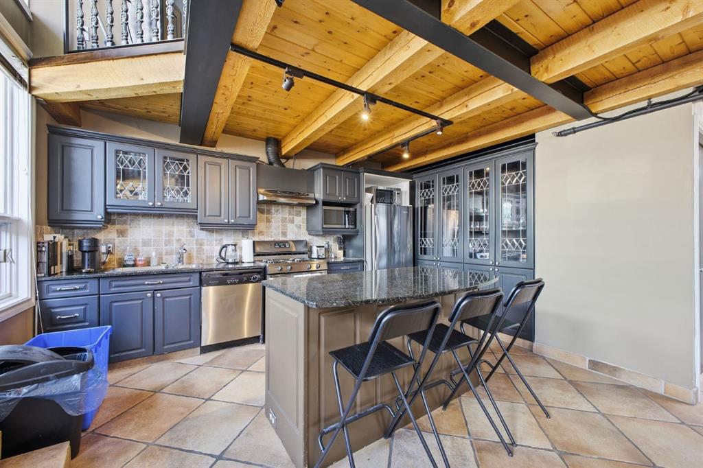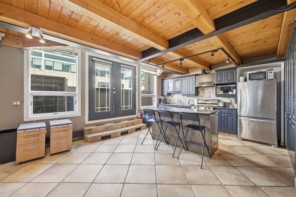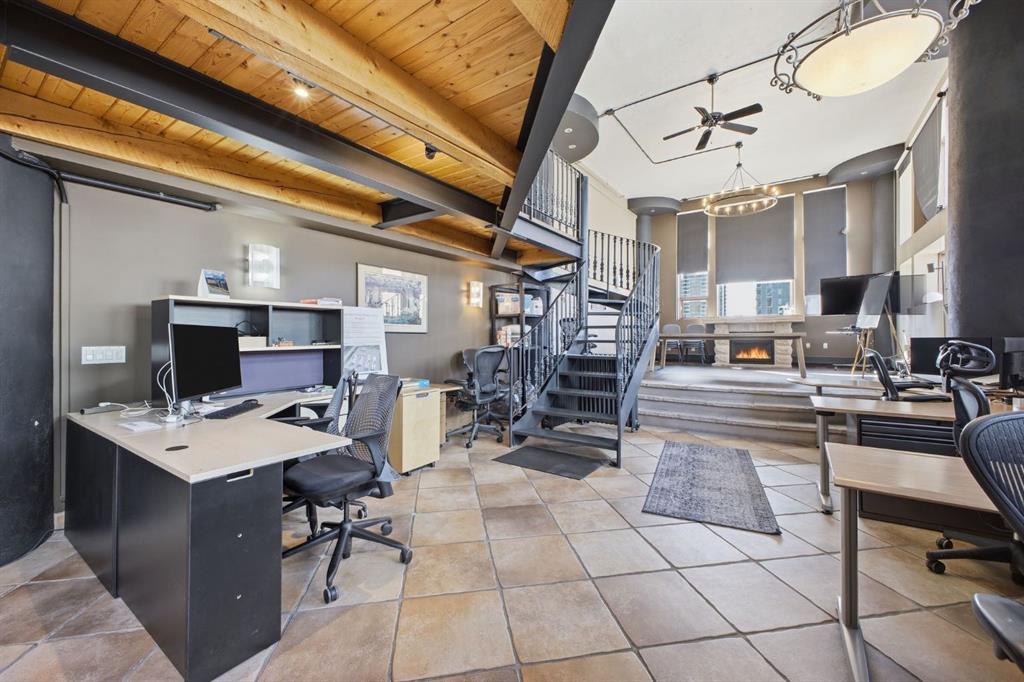 Have you ever imagined living or working in Manhattan? This loft delivers that same urban energy—right in the heart of Calgary. With zoning that allows both residential and commercial use, you can call it home, office, or a dynamic combination of the two. Currently utilized as office space, this impressive two storey unit offers soaring 20’ ceilings & nearly 1,600 sq ft of living space that can be re imagined into a stunning loft residence. The lower level features refinished hardwood flooring, and a dramatic chandelier. This space flows into an expansive open area ideal for a generous living/dining configuration. The kitchen is well appointed with granite countertops, an island with eating bar, stainless steel appliances, ample cabinetry, and a built in hutch for additional storage. A 3 piece bath and abundant storage complete the main level. A sweeping curved staircase leads to the upper floor, where you’ll find a spacious open loft with room for a large bedroom and office setup, along with a 4 piece bath. Units 301 and 303 are being sold separately; however, if purchased together, they can be seamlessly connected to create a truly spectacular space. If only one unit is purchased, the access point between them will be professionally sealed. Additional highlights include in suite laundry, a west facing balcony, one assigned parking stall and a large assigned storage locker. Set amid Calgary’s best restaurants, cafés, and entertainment—and just a short walk to the downtown core—this location offers the ultimate in urban convenience and vibrancy.
