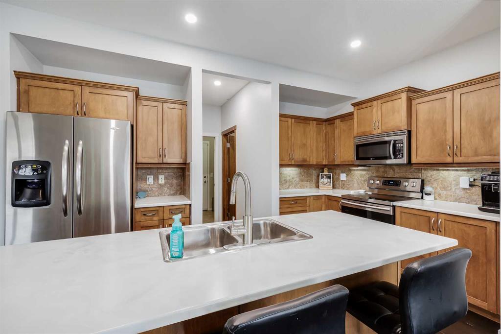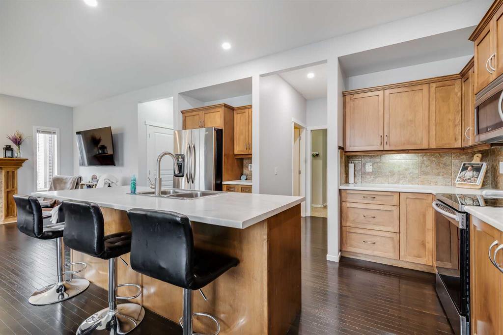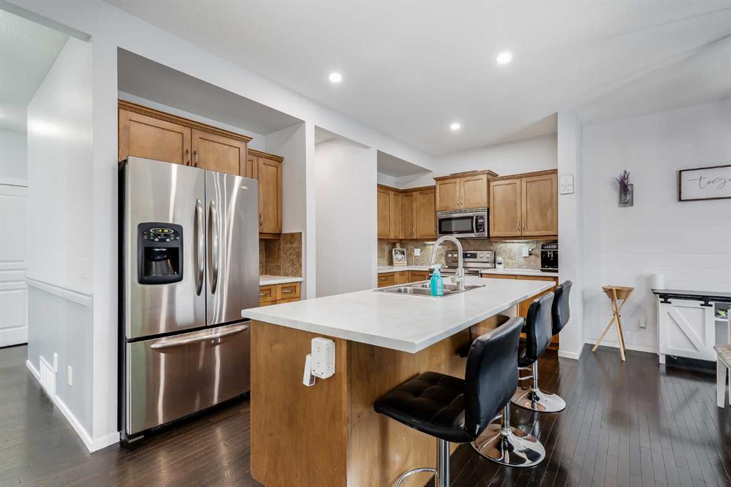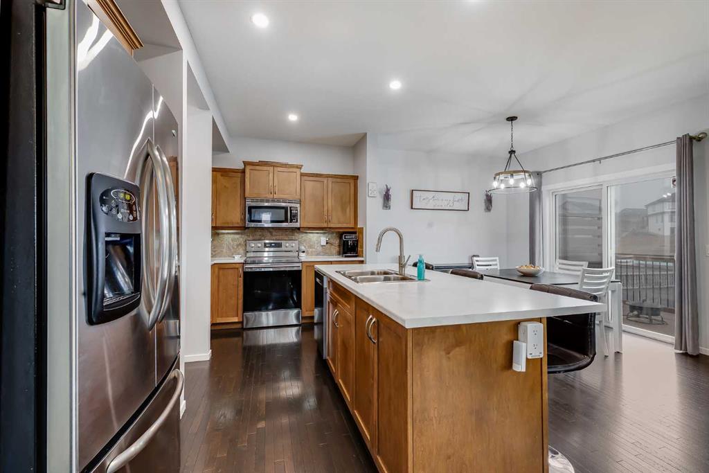 Welcome to over 2,600 SQUARE FEET of living space with NO REAR NEIGHBOURS & a 34 FOOT DRIVEWAY! Out front the first thing you notice is the huge driveway, perfect for extra cars or your RV. As you enter you come into the family size entrance way, you’ll notice the HARDWOOD FLOORING which leads directly into the main space of the home. The kitchen features lots of cabinets, plenty of countertop space, and a huge WALK-IN PANTRY. The living room features plenty of windows and a Gas Fireplace. Moving into the dining room you’ll notice the large west facing patio door brings in a lot of natural light, and is plenty big enough for your family table. Completing the main level is your laundry room & half bathroom. Moving upstairs you’ll notice the BRAND NEW CARPET up here. Upstairs you’ll find the oversized bonus room at the front of the home with vinyl plank flooring that could be a 4th upper bedroom if needed! The master bedroom features a bright west facing window, lots of space for your king size bed, and a 5 PIECE EN-SUITE with double sinks, separate tub & shower. Making up the rest of your upper level are the 2nd & 3rd bedrooms. Both complete with that same vinyl plank flooring as the bonus room, and of course your 4 piece main bathroom. Moving downstairs You’ll find it’s currently set up as a hair studio, with a hair sink where the bathroom rough in is located, a large rec room area, and a MASSIVE BASEMENT BEDROOM! Out back is a two-tiered deck, perfect for entertaining, and still plenty of yard space for the kids or dogs, with no rear neighbours behind you! Book your showing today.