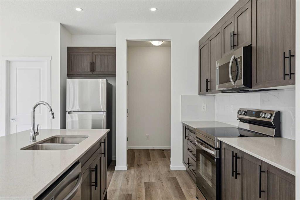 Step into a home that feels brand new—because it practically is. Lovingly maintained and only lived in for just over a year, this exceptional property offers modern comfort, thoughtful design, and outstanding value in the community. From the moment you enter, you’re welcomed by a bright, open-concept main floor featuring expansive windows that flood the space with natural light. Stylish vinyl plank flooring flows seamlessly throughout. The contemporary kitchen is the heart of the home, complete with a large island, stainless steel appliances, and ample space for entertaining. A convenient 2-piece powder room completes the main level. Upstairs, you’ll find three generously sized bedrooms, including a beautiful primary retreat with a walk-in closet and a luxurious 4-piece ensuite showcasing a double vanity. A versatile family room, an upper-level laundry room, and an additional 4-piece bathroom provide comfort and functionality for everyday living. Adding incredible value is the fully LEGAL basement suite with a separate entrance—perfect for extended family or rental income. This well-appointed space includes a bedroom, 4-piece bathroom, den, and a modern kitchen with breakfast bar seating. There is a second washer and dryer in lower suite. There is a TANKLESS hot water system providing unlimited hot water for the entire home. Offering unmatched value for a single-family home with a legal suite, this is a rare opportunity to own a nearly new home that truly has it all.
