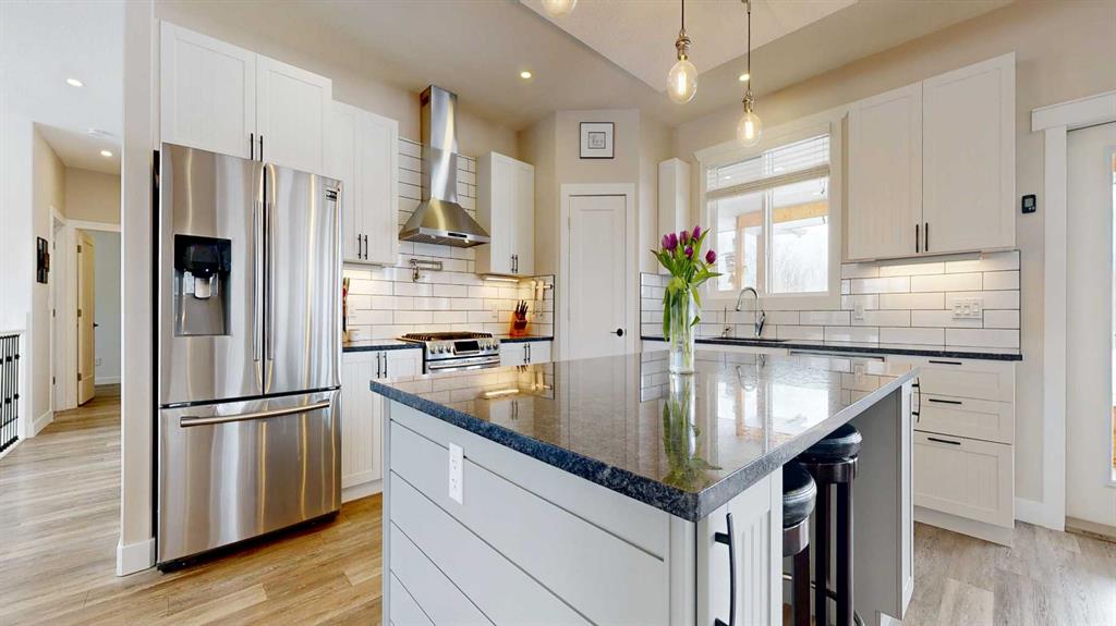 Luxury meets practicality in this one-owner, custom built 2018 home, designed with intention, flow, and everyday comfort in mind. Pulling into your oversized 27x30’ attached garage, you’re welcomed into a spacious entryway, your main floor laundry, and a convenient 3-piece bathroom, keeping everything functional and within reach.